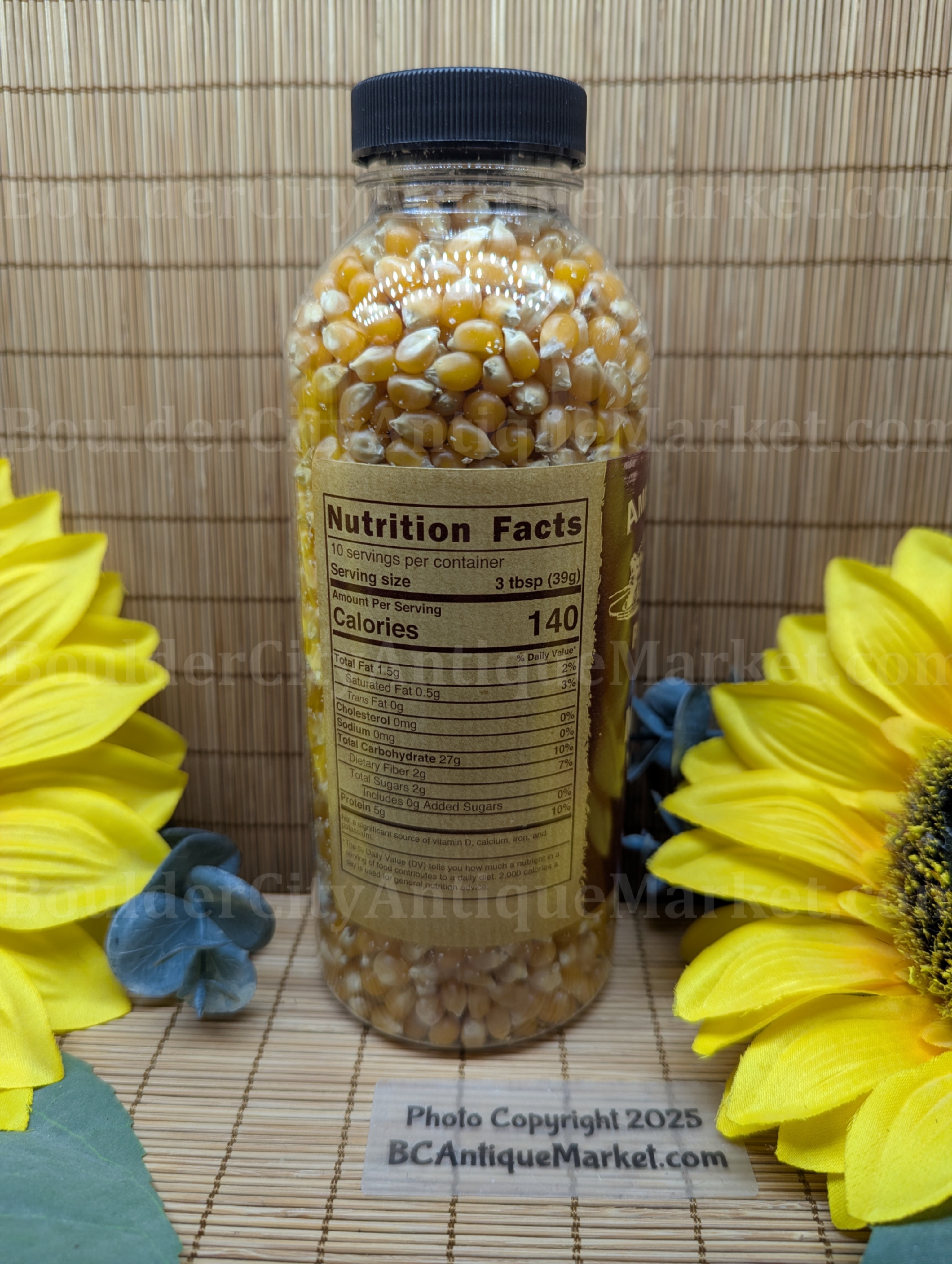 Gourmet theater-style popcorn. One of the larger varieties and pops up in standard “butterfly” fashion, Medium Yellow is perfect for any popcorn bar or movie night. 14 oz bottle makes 10 servings at 140 calories per serving.