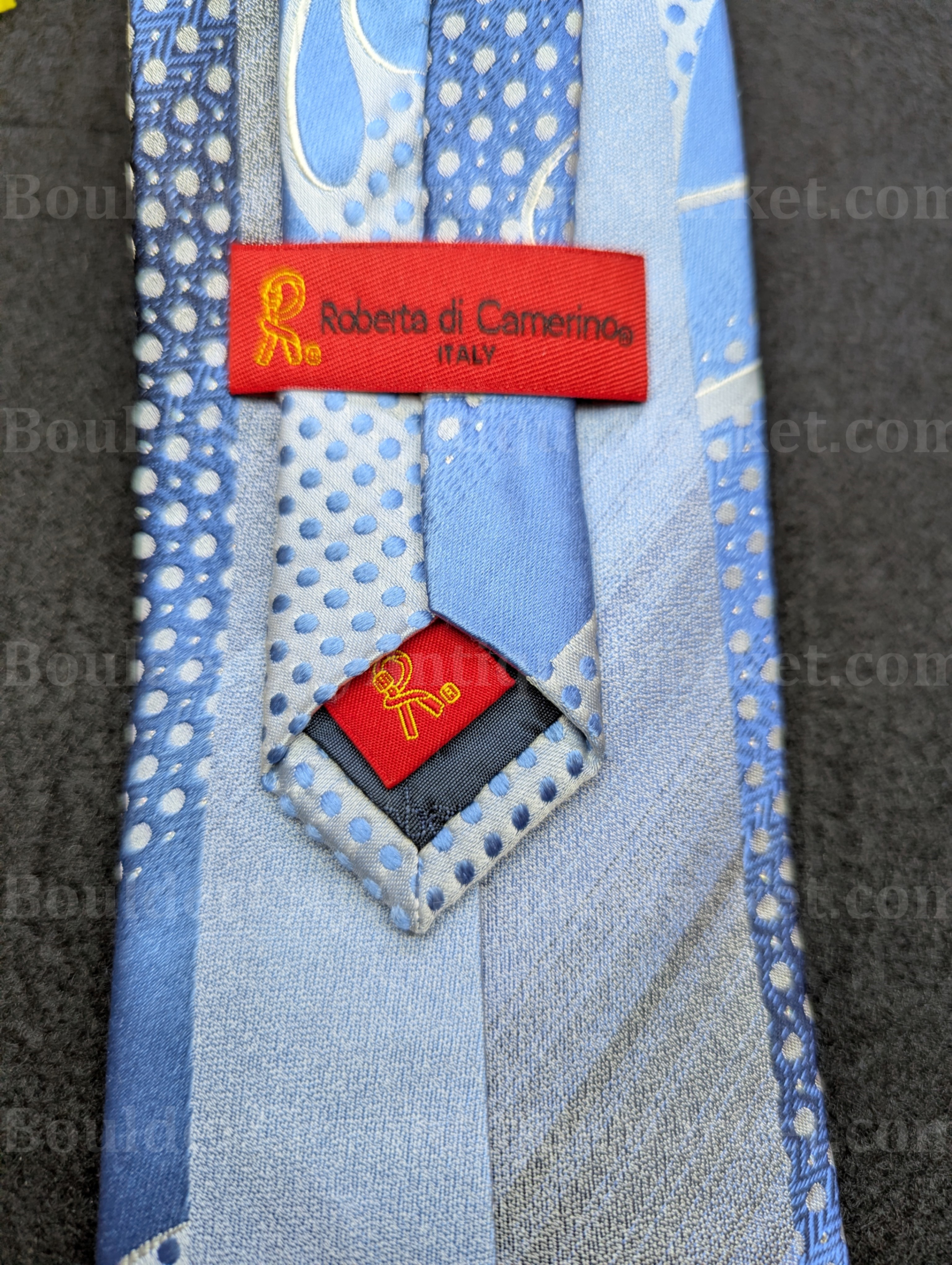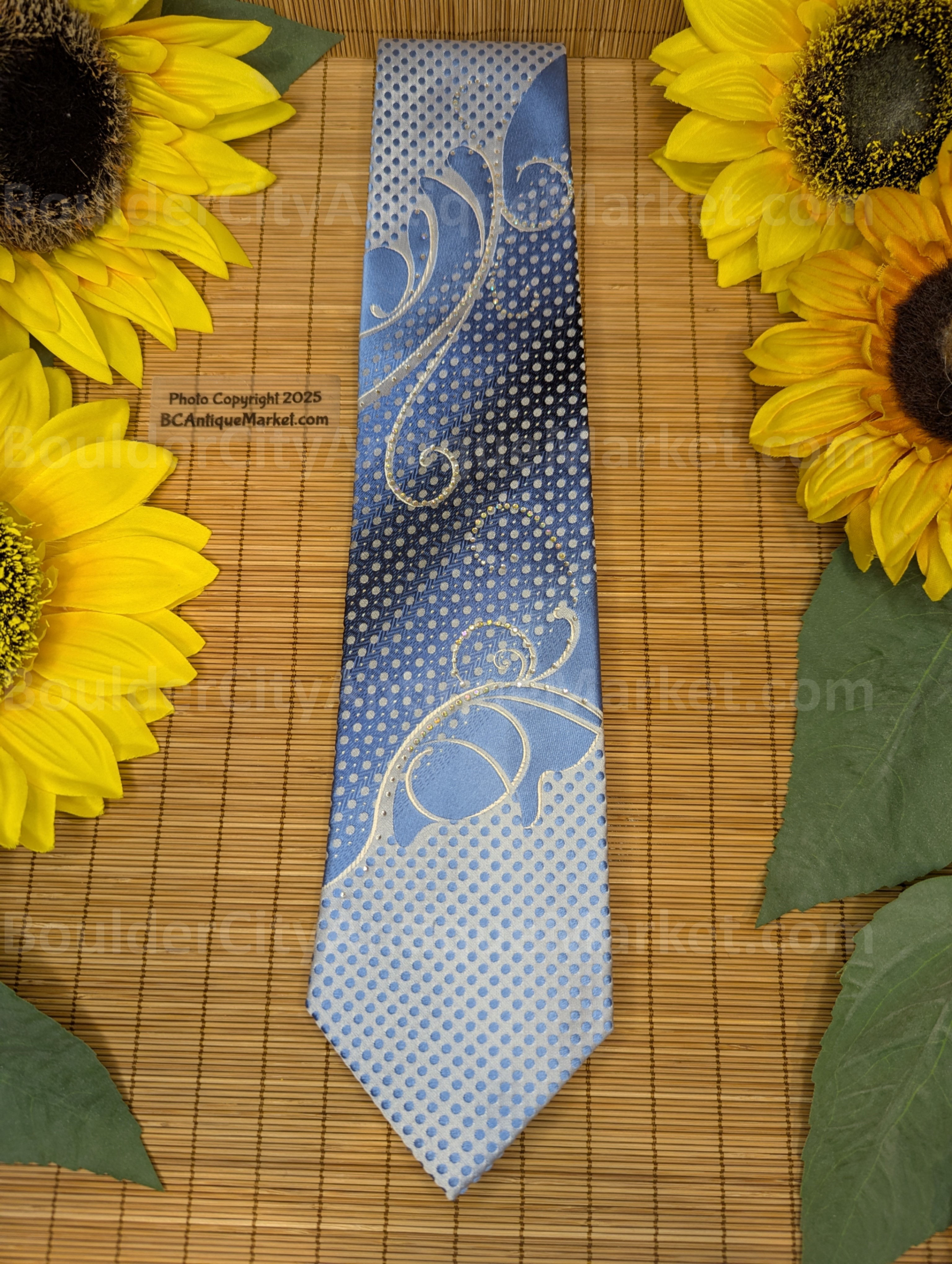 Roberta di Camerino Italian tie made of 100% silk in a blue pattern with just the right amount of multicolor rhinestone sparkle.