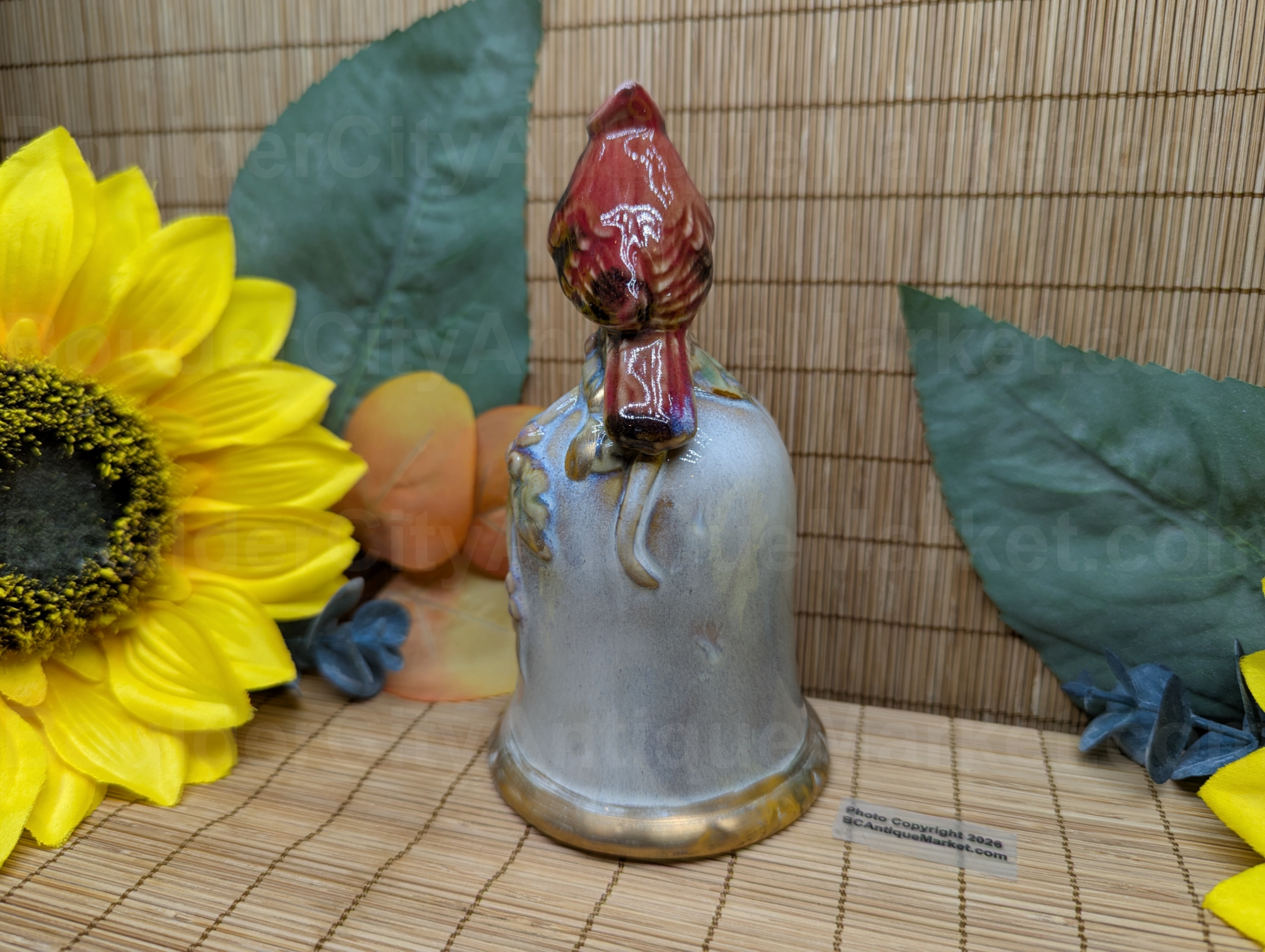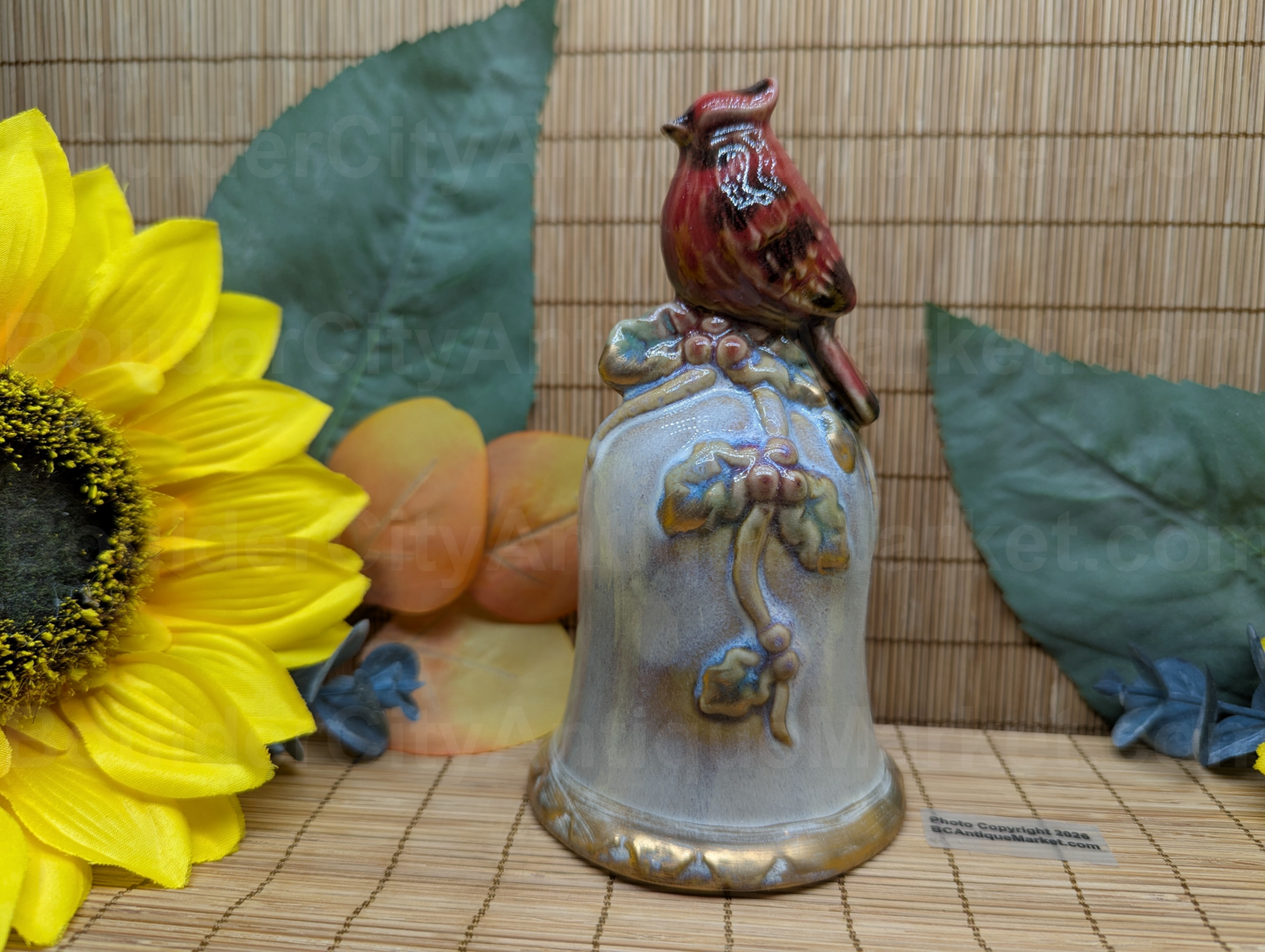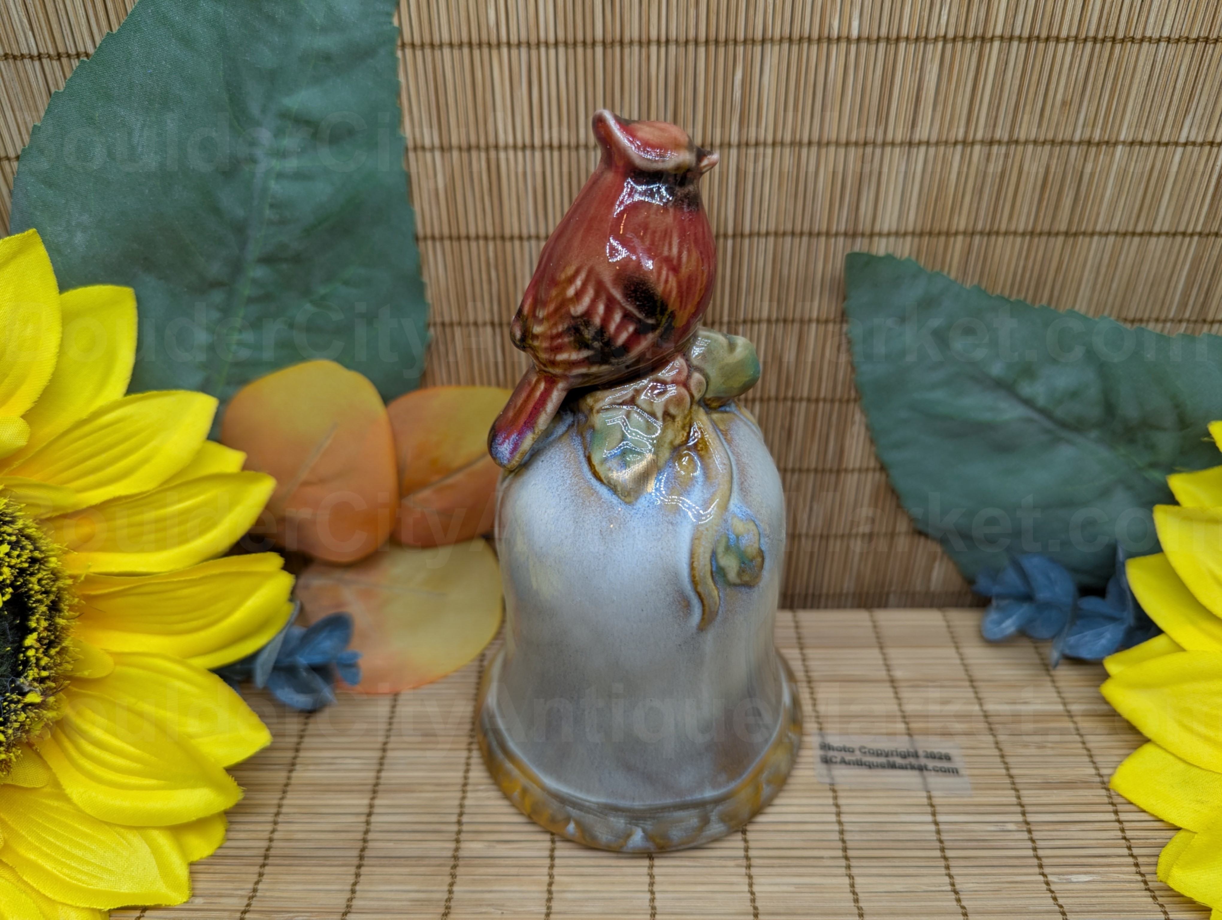 Vintage pottery style 5.25″ holiday cardinal bell. Likely dates from the 1980s?