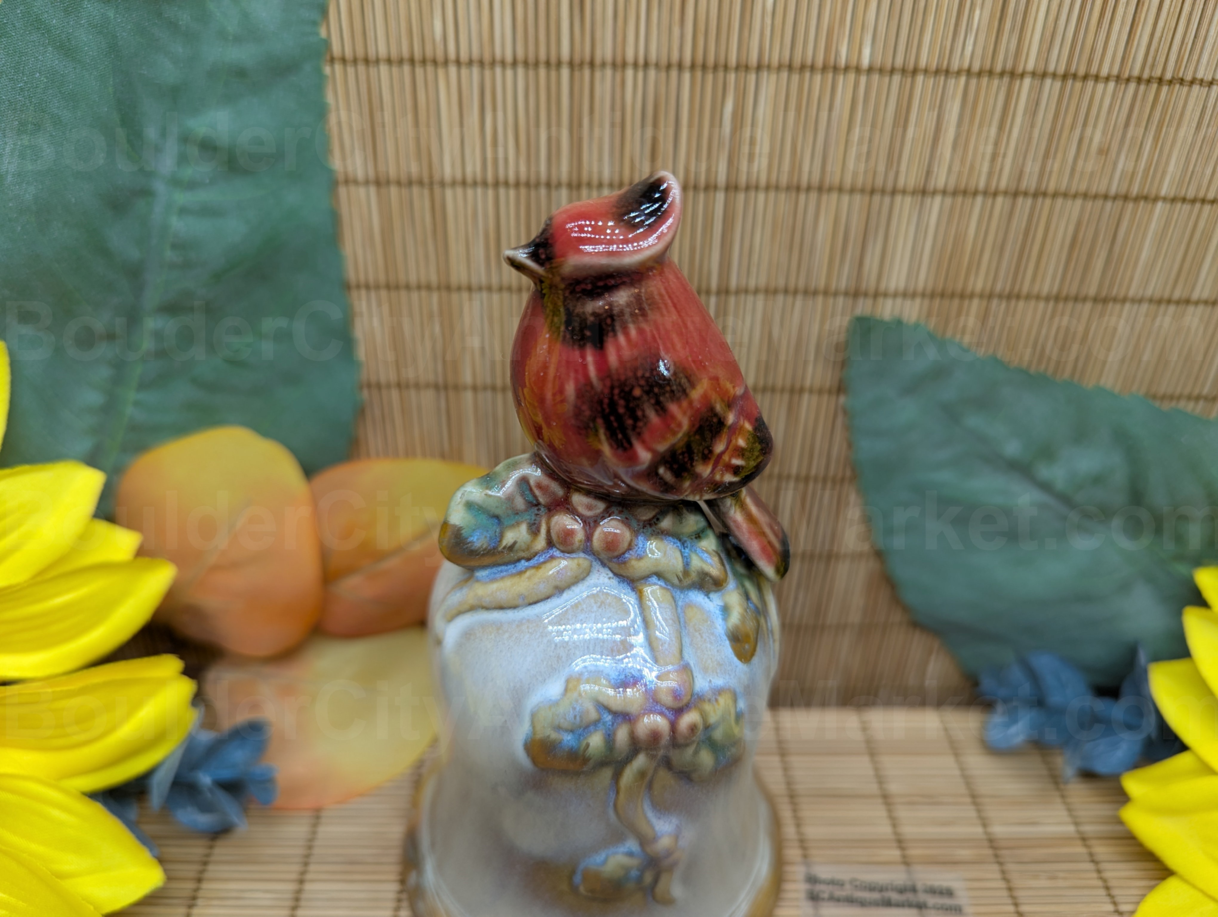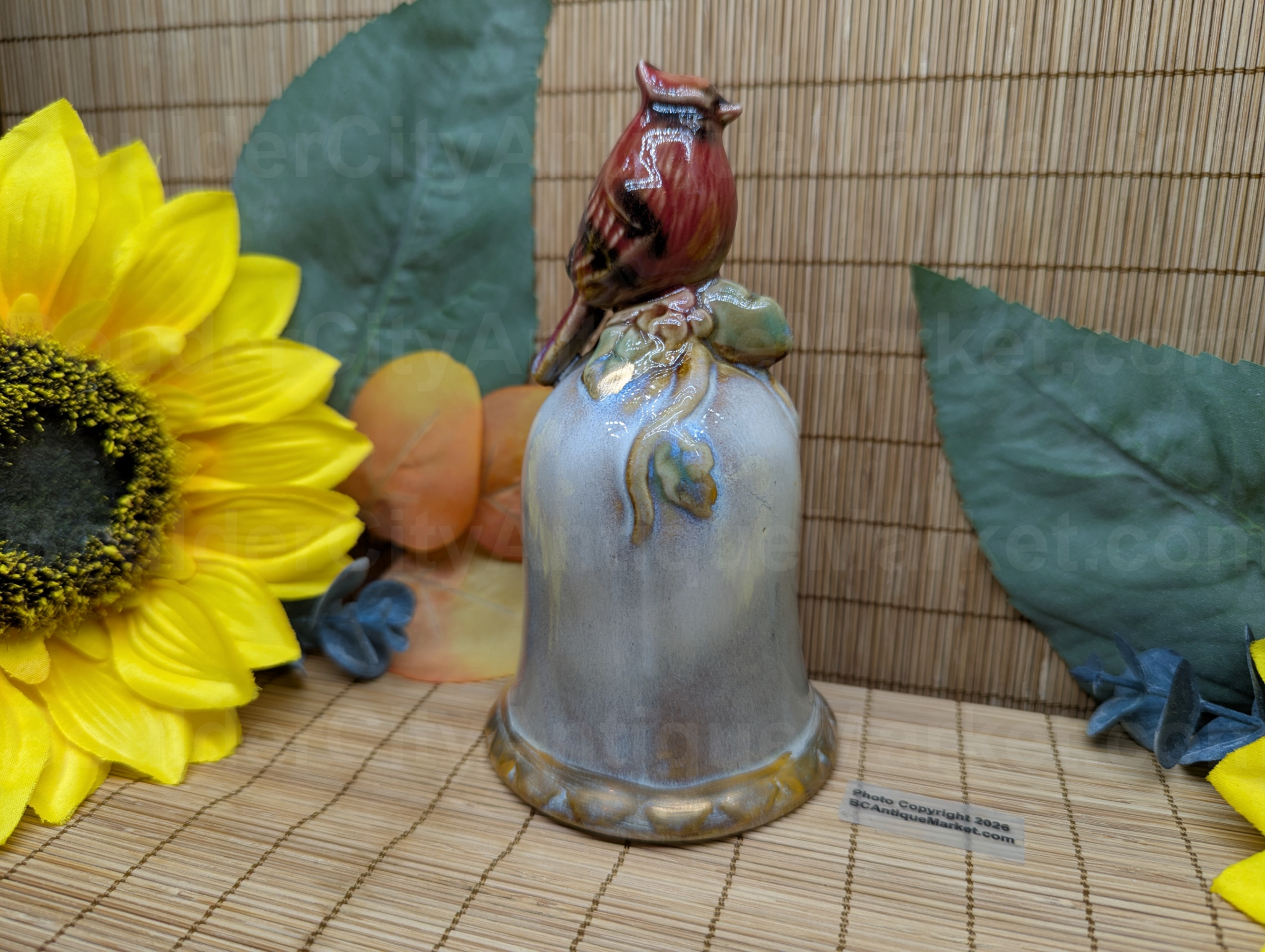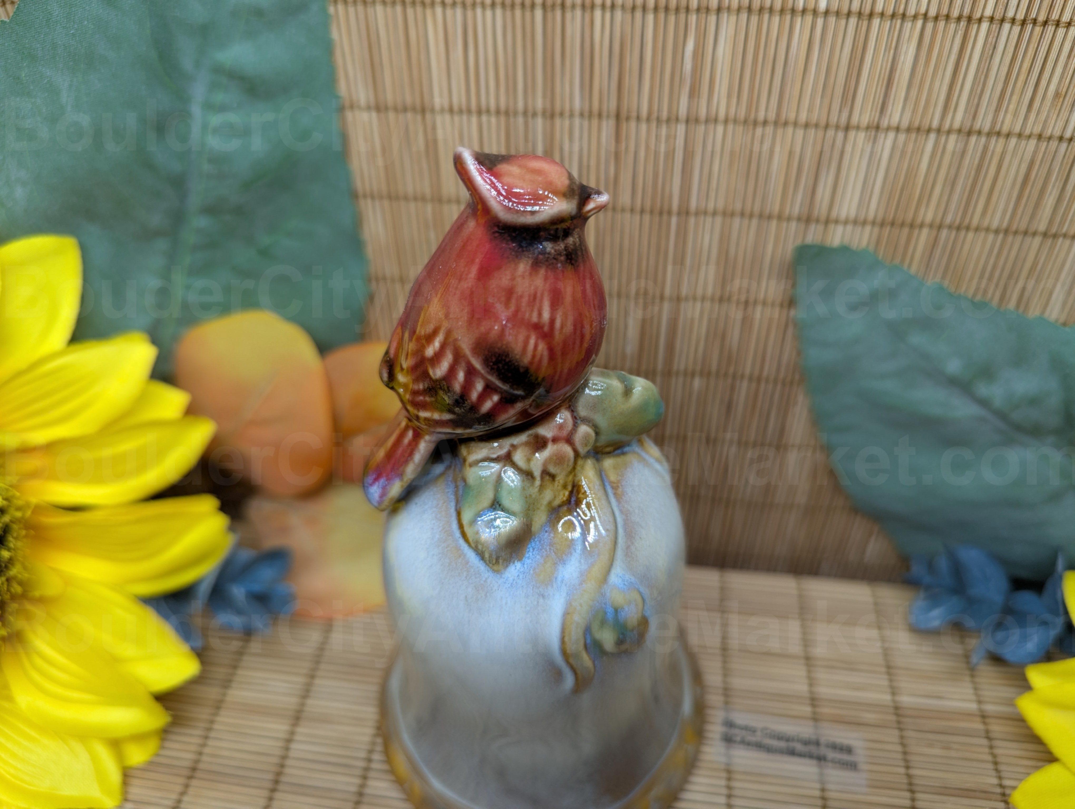 Vintage pottery style 5.25″ holiday cardinal bell. Likely dates from the 1980s?