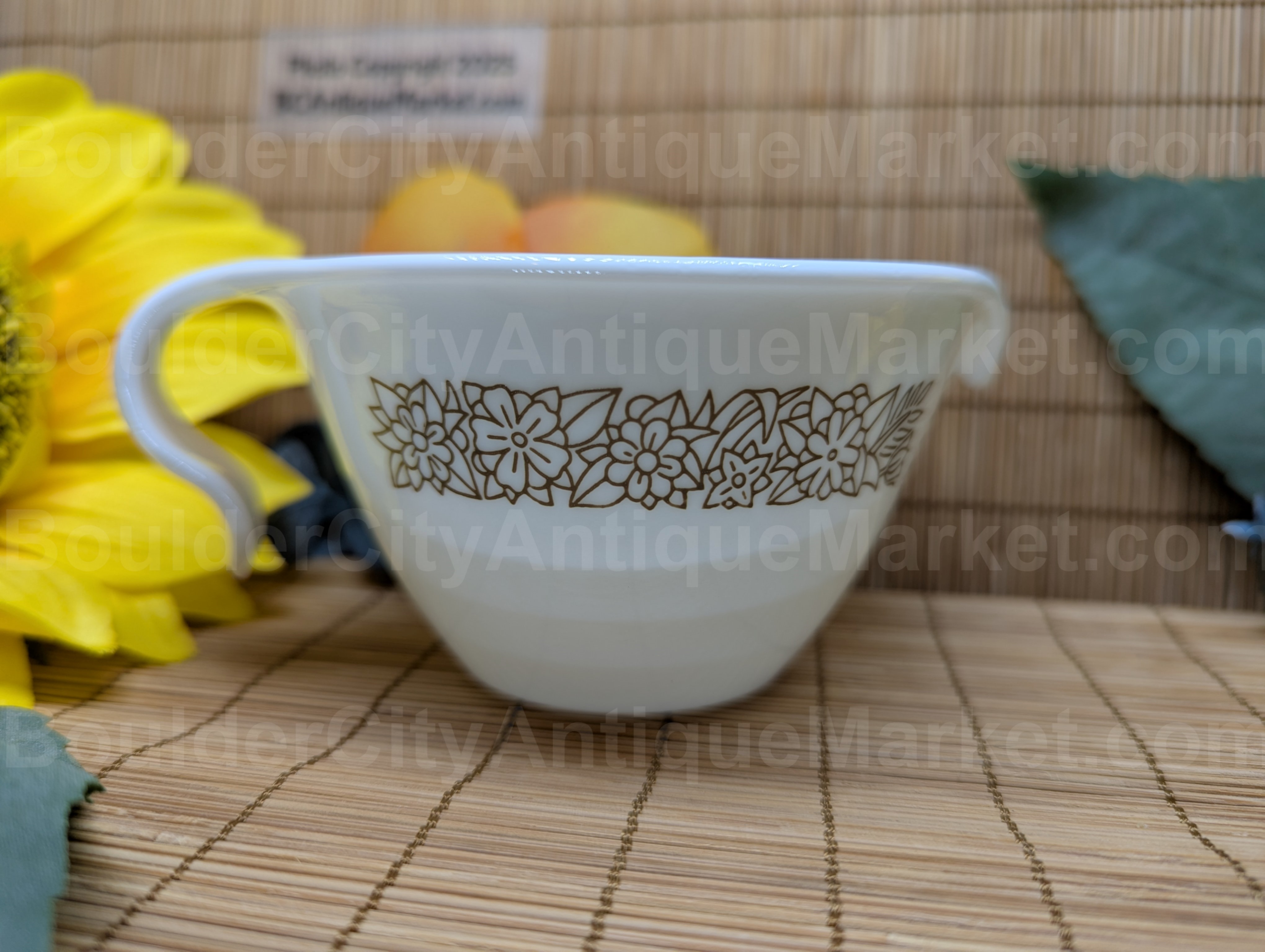 Corelle Woodland Brown (pattern 7002) was produced from 1978 to 1986. This hooked handle creamer is in excellent condition.