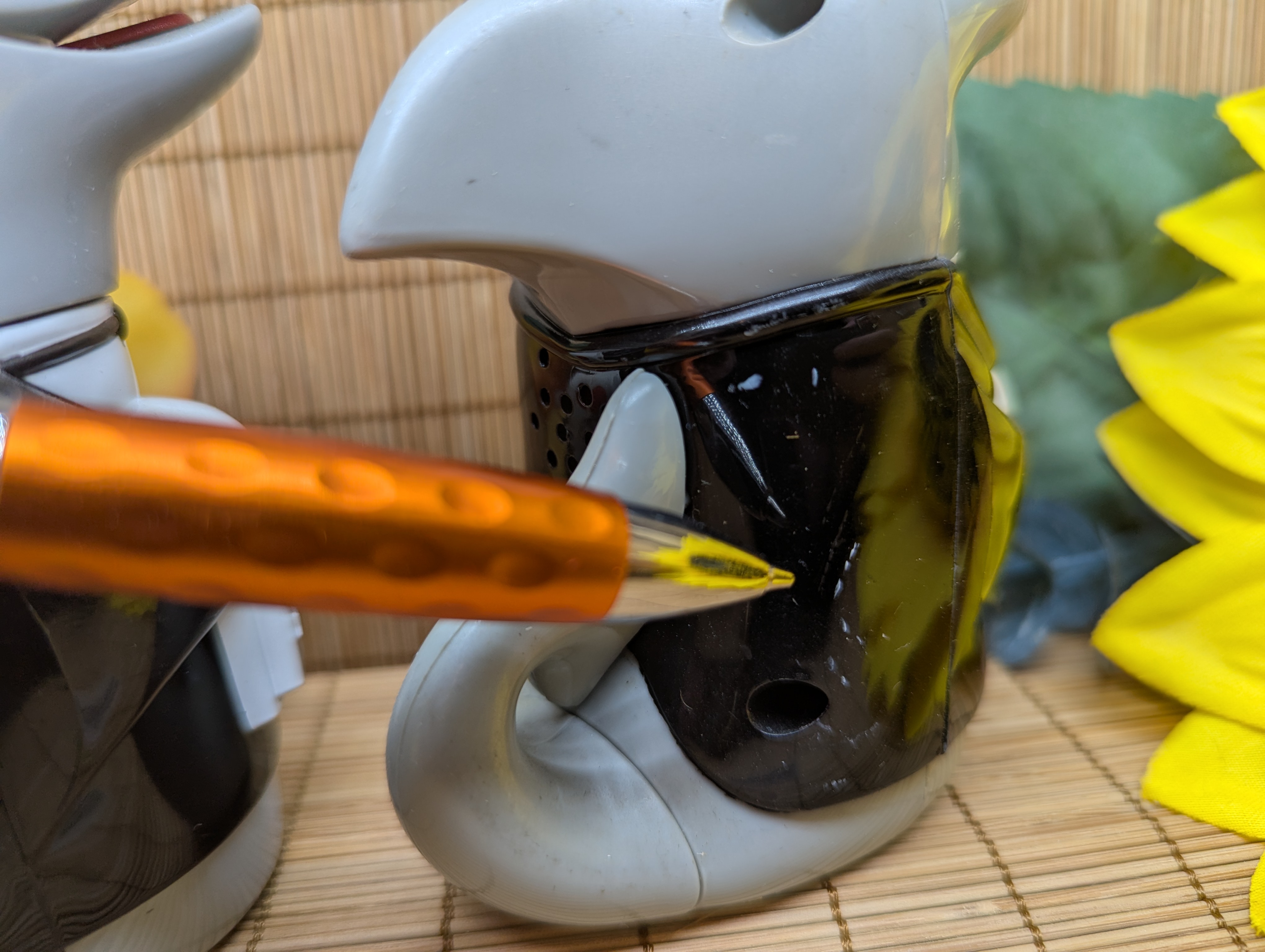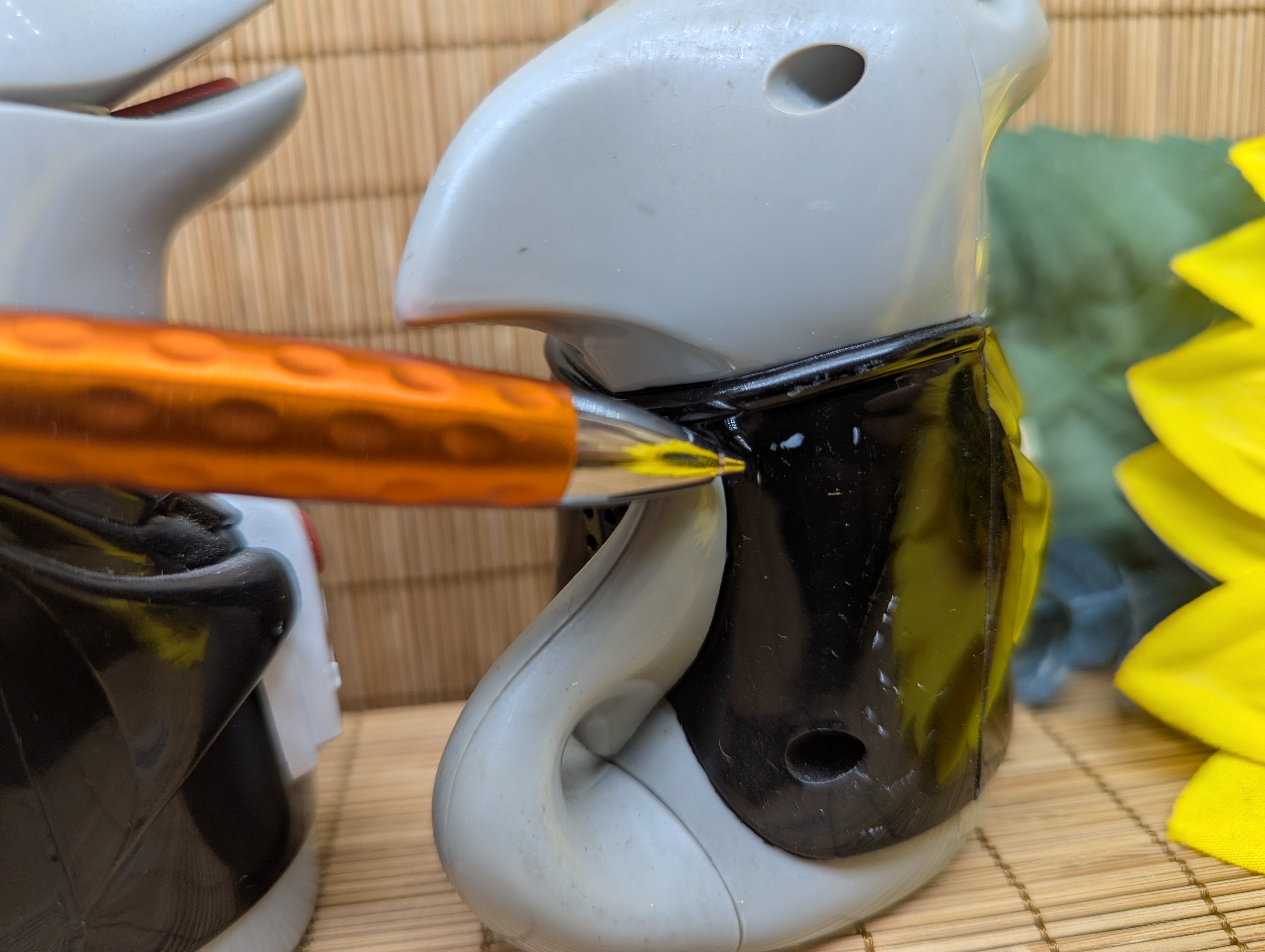 Vintage 1999 set originally produced by Fun-damental Too Ltd. This set does take batteries and is listed as playing the Jaws theme music when moved or opened. We do not have the proper batteries so have not tried this feature and the set is sold as not known if accurate. The red buttons on each piece do press in. This set was used. The are some minor rub marks on the shark, please see the pictures for details. This set stands 4.5 inches tall and is made of heavy-duty plastic.
