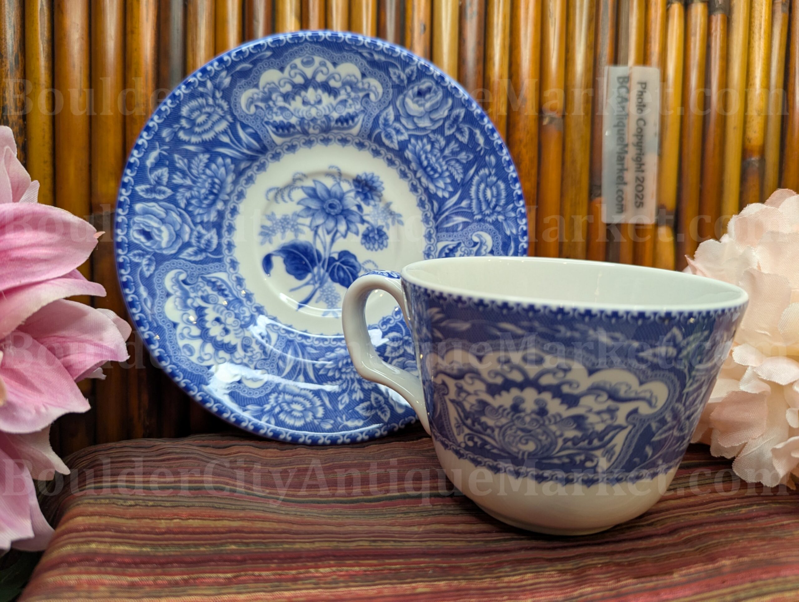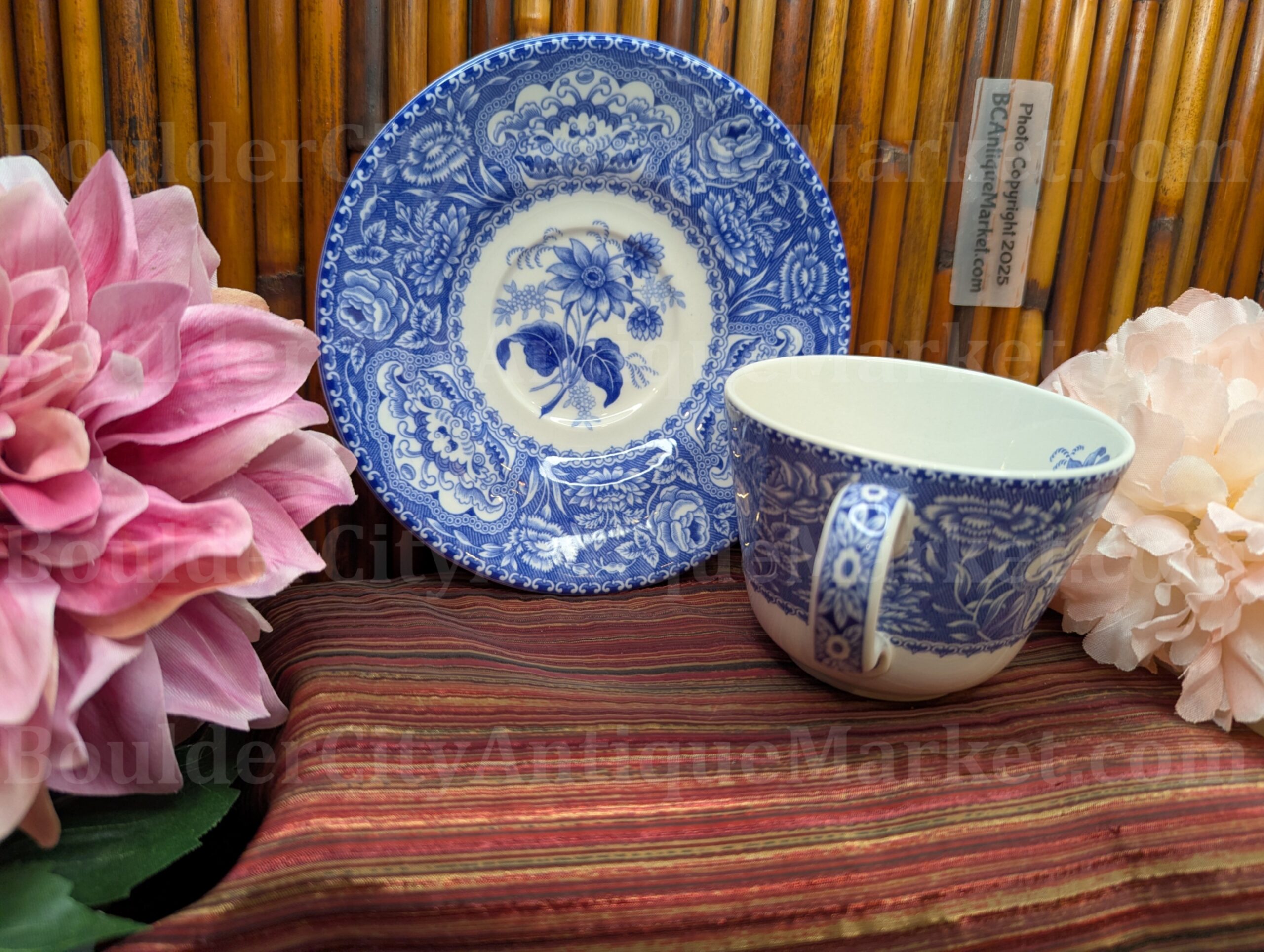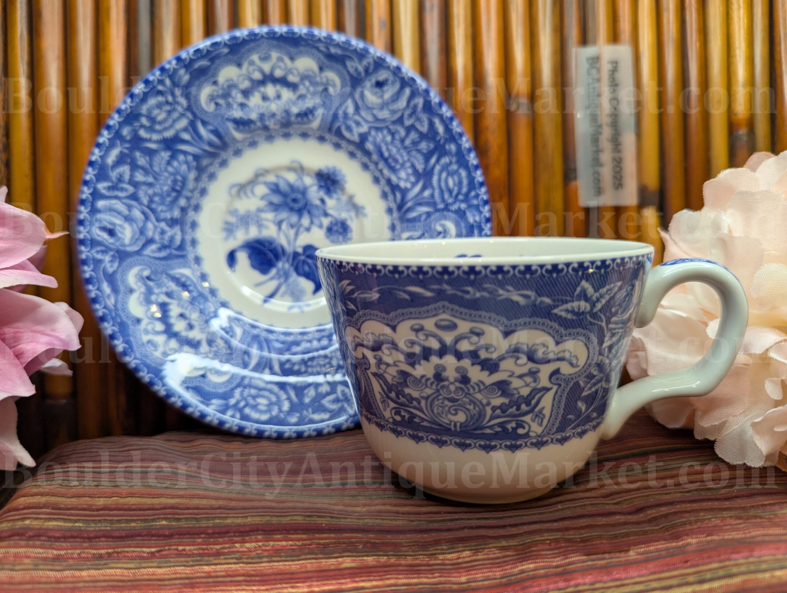 Full sized teacup 3.5″ diameter, saucer 5.75″ diameter.