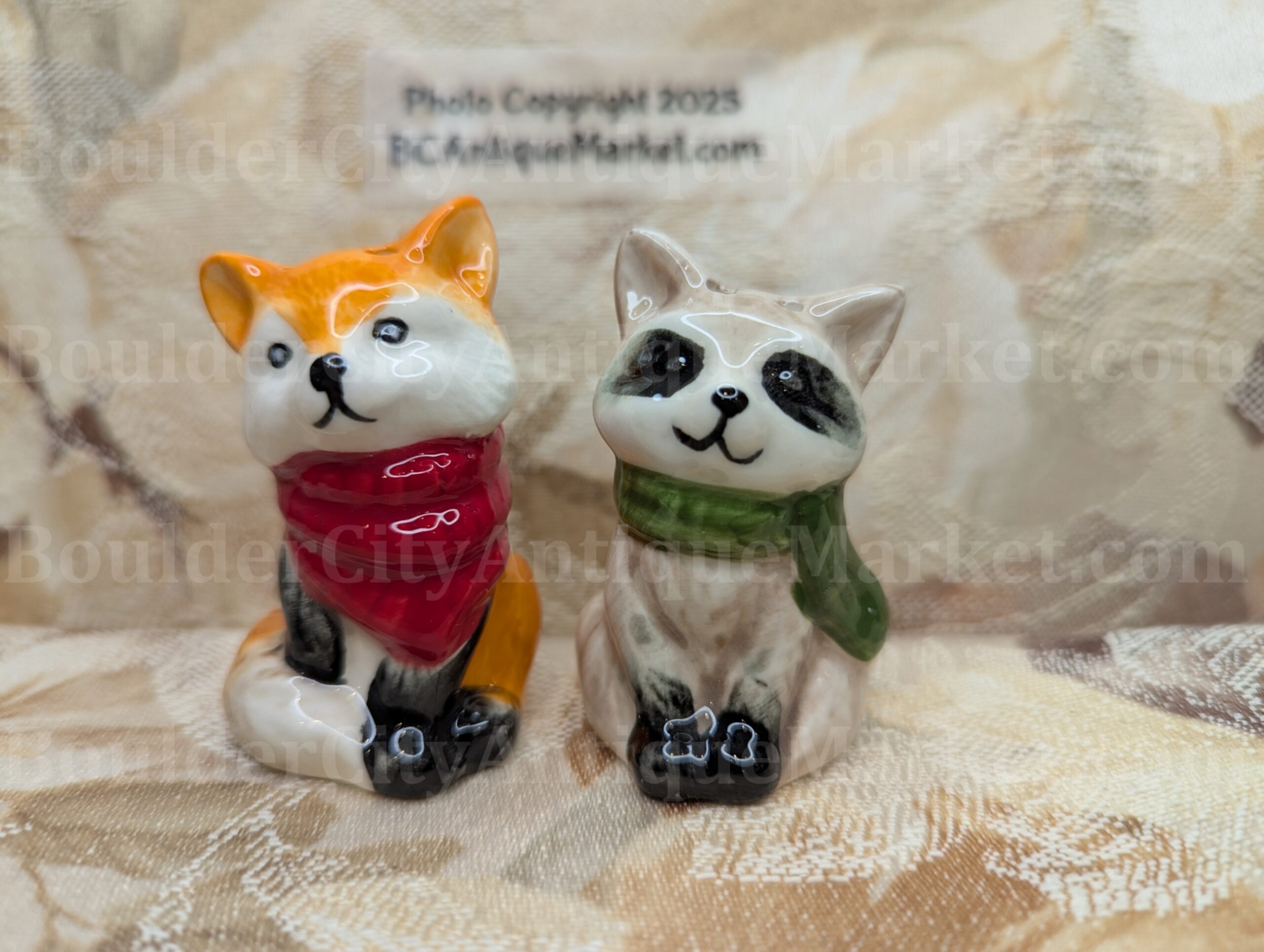 Fox and Racoon with Scarves – Small Salt and Pepper Set
