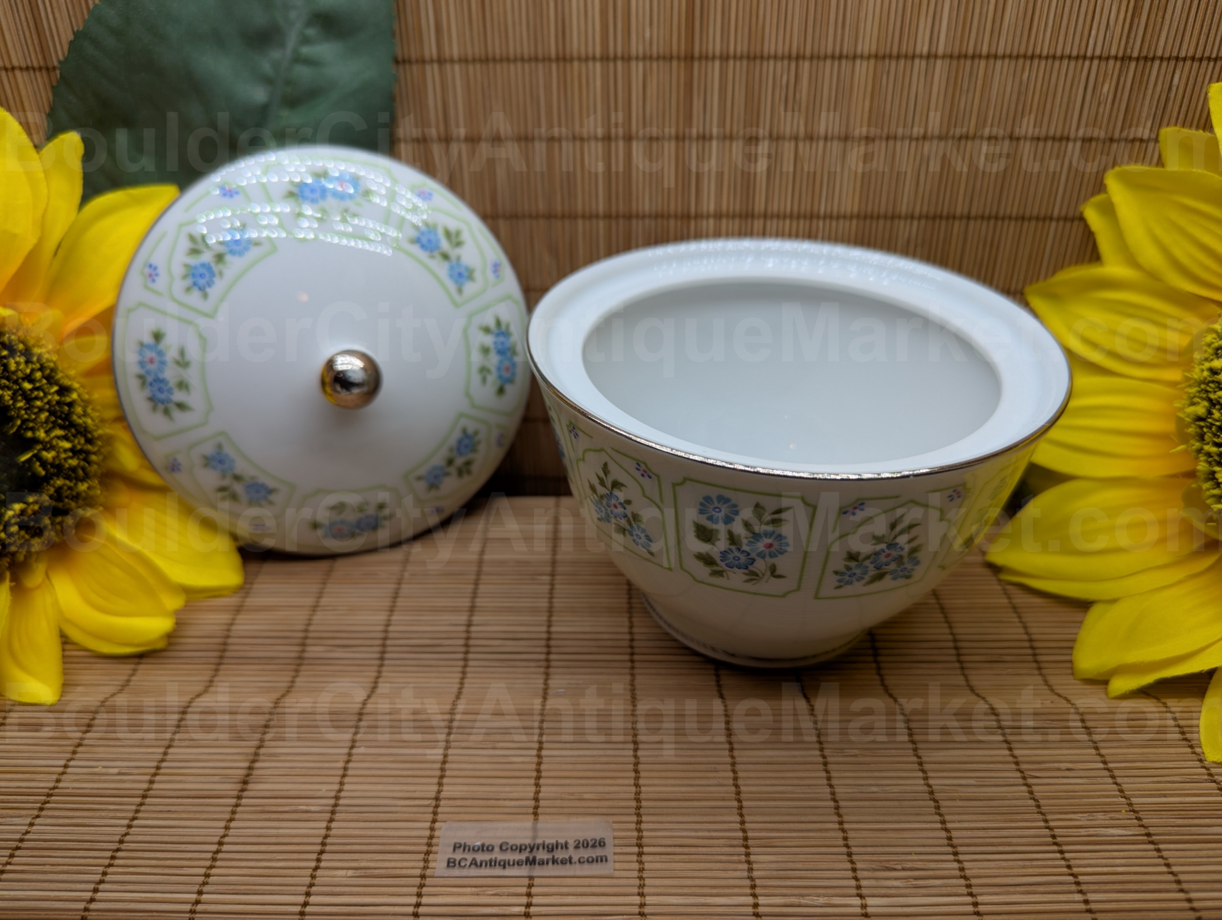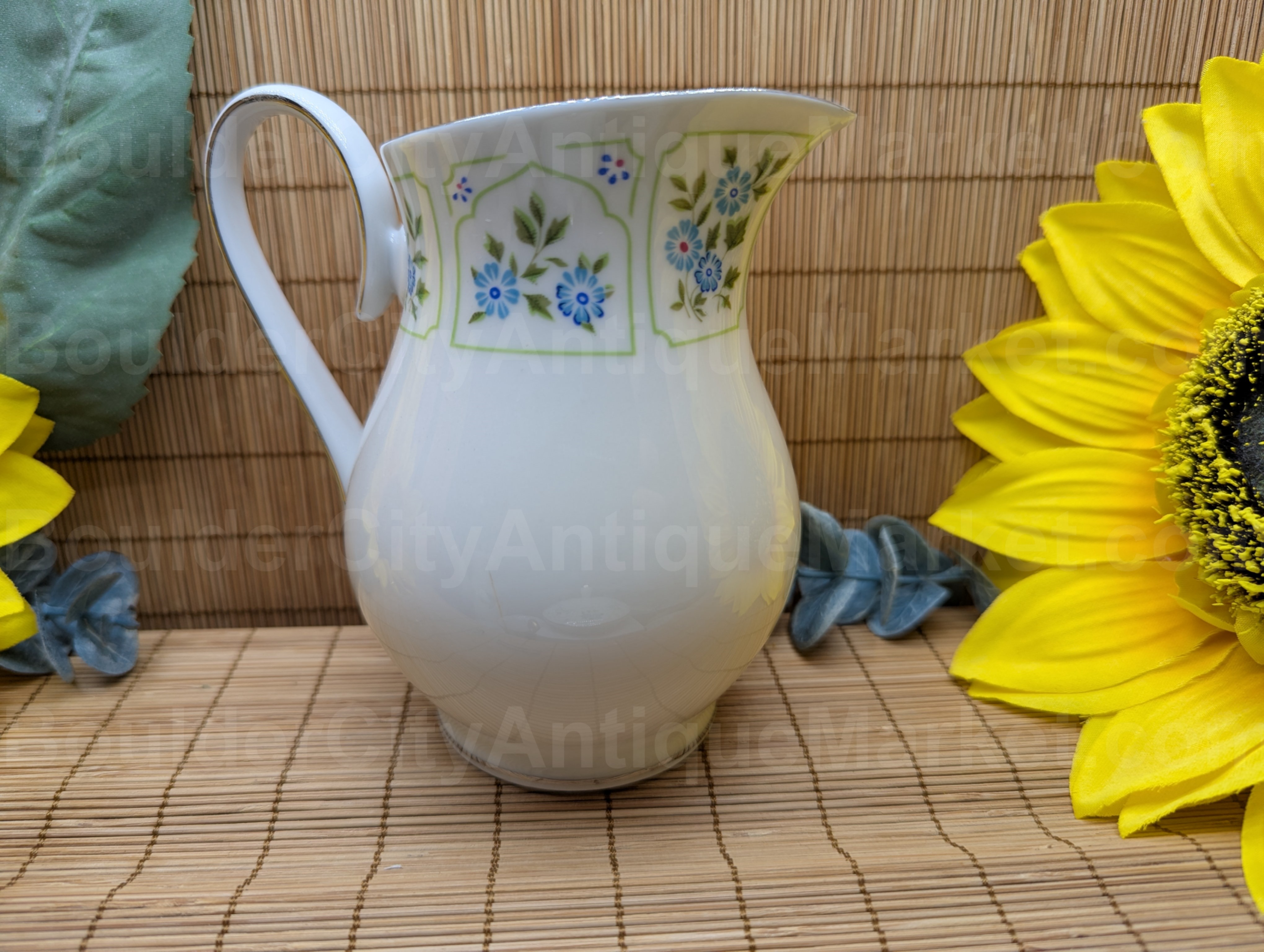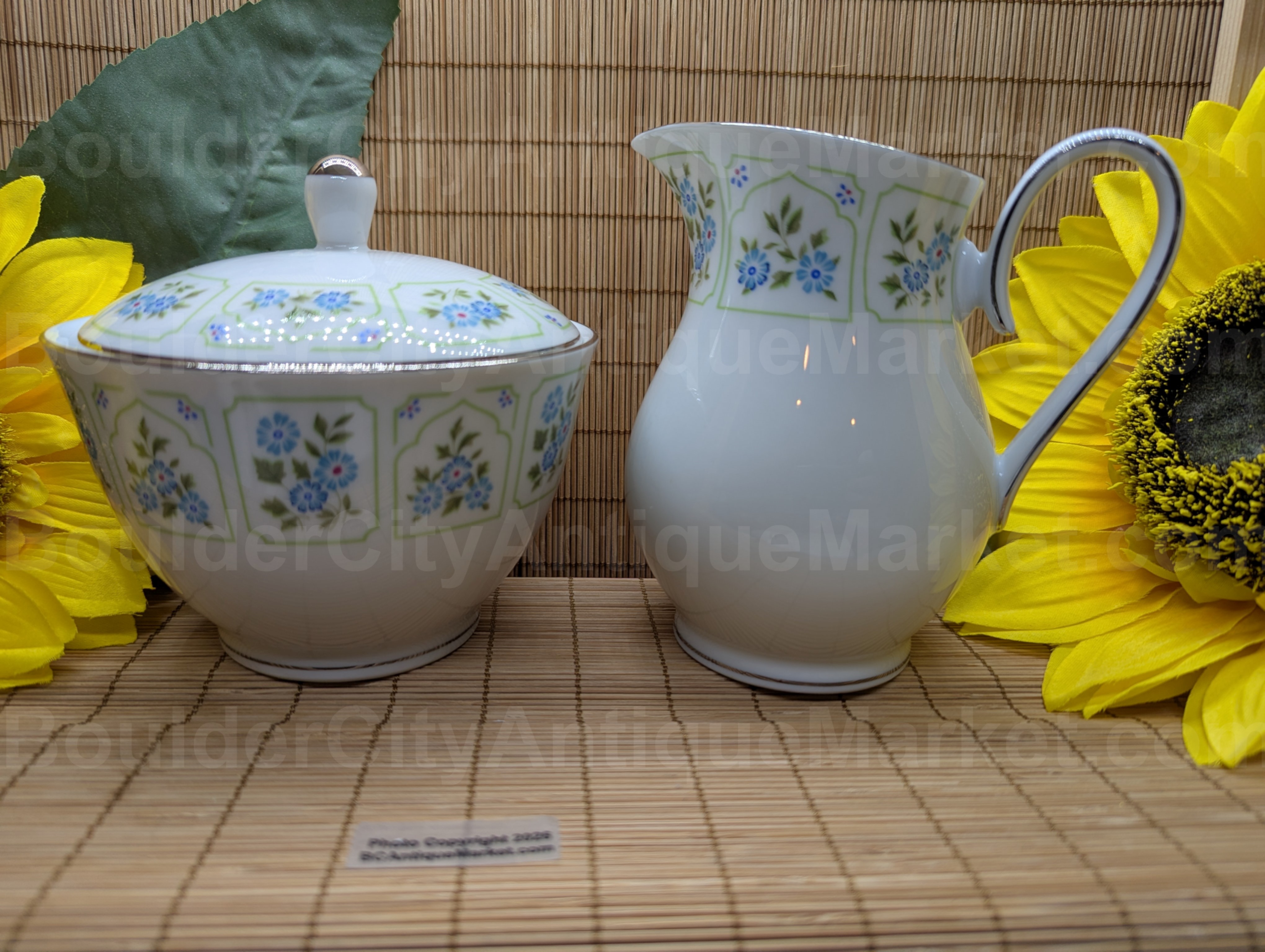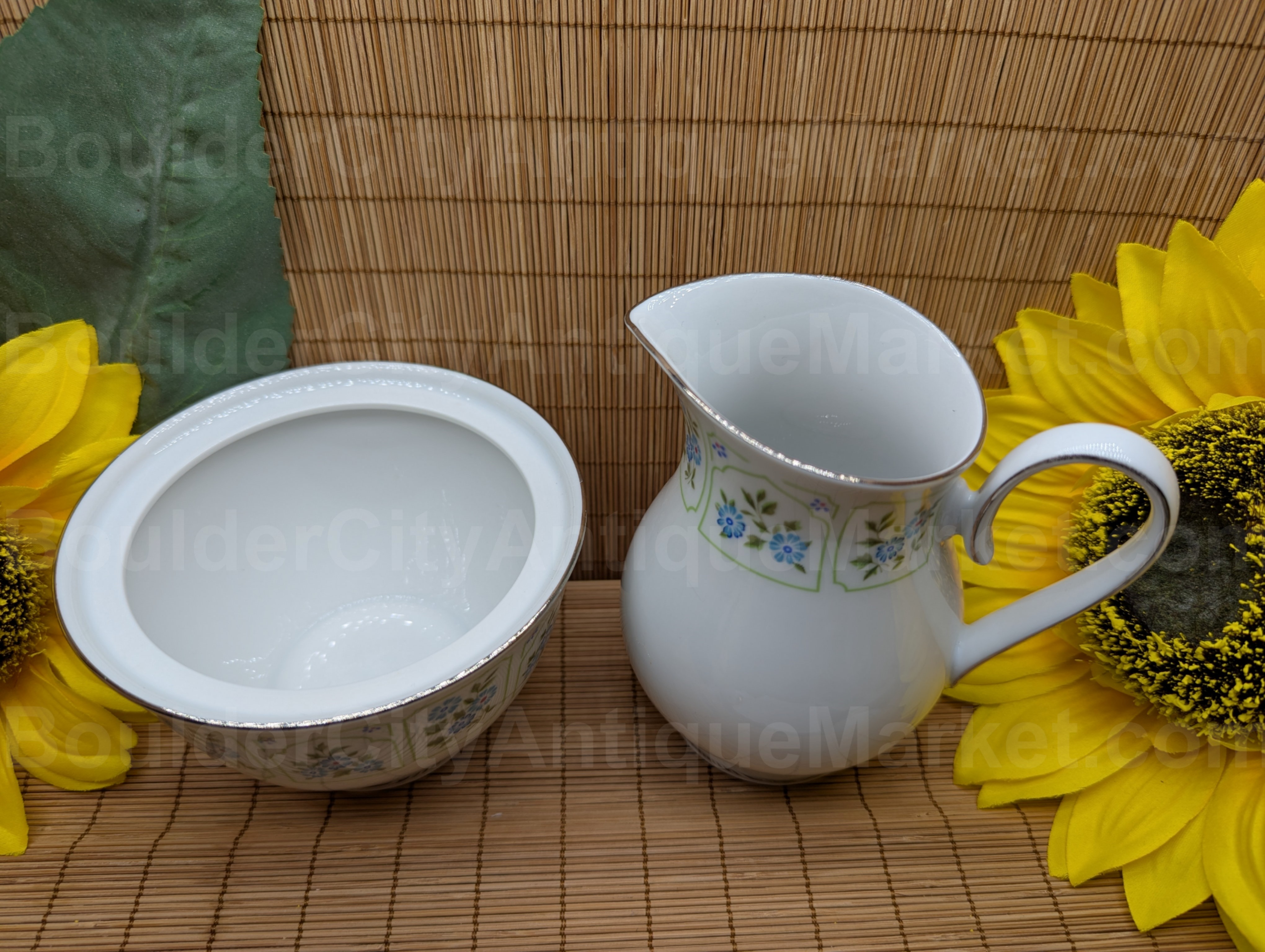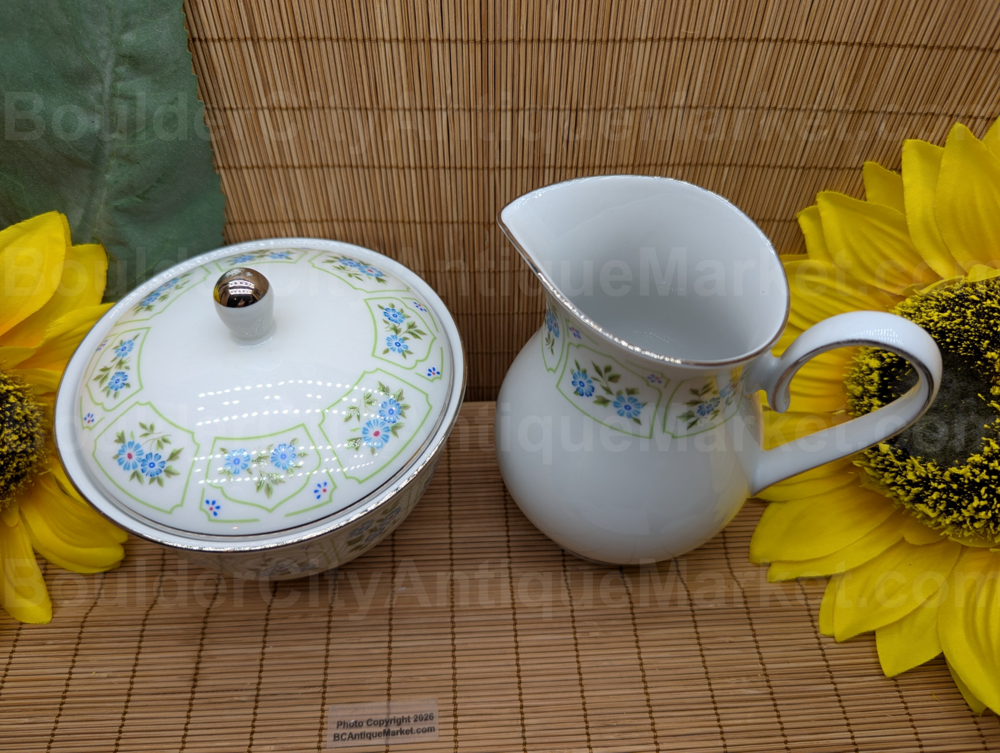 Franconia China Quadrille pattern from the 1950-1970s. Platinum trim, bright pattern, and the only sign of wear is a rub on top of the sugar bowl lid (see pictures). The Franconia-Krautheim & Adelburg factory was in Selb, Bavaria, Germany. The creamer is aprox 6-inches tall and the creamer is aprox 5-inches tall with a diameter of 4.5-inches.