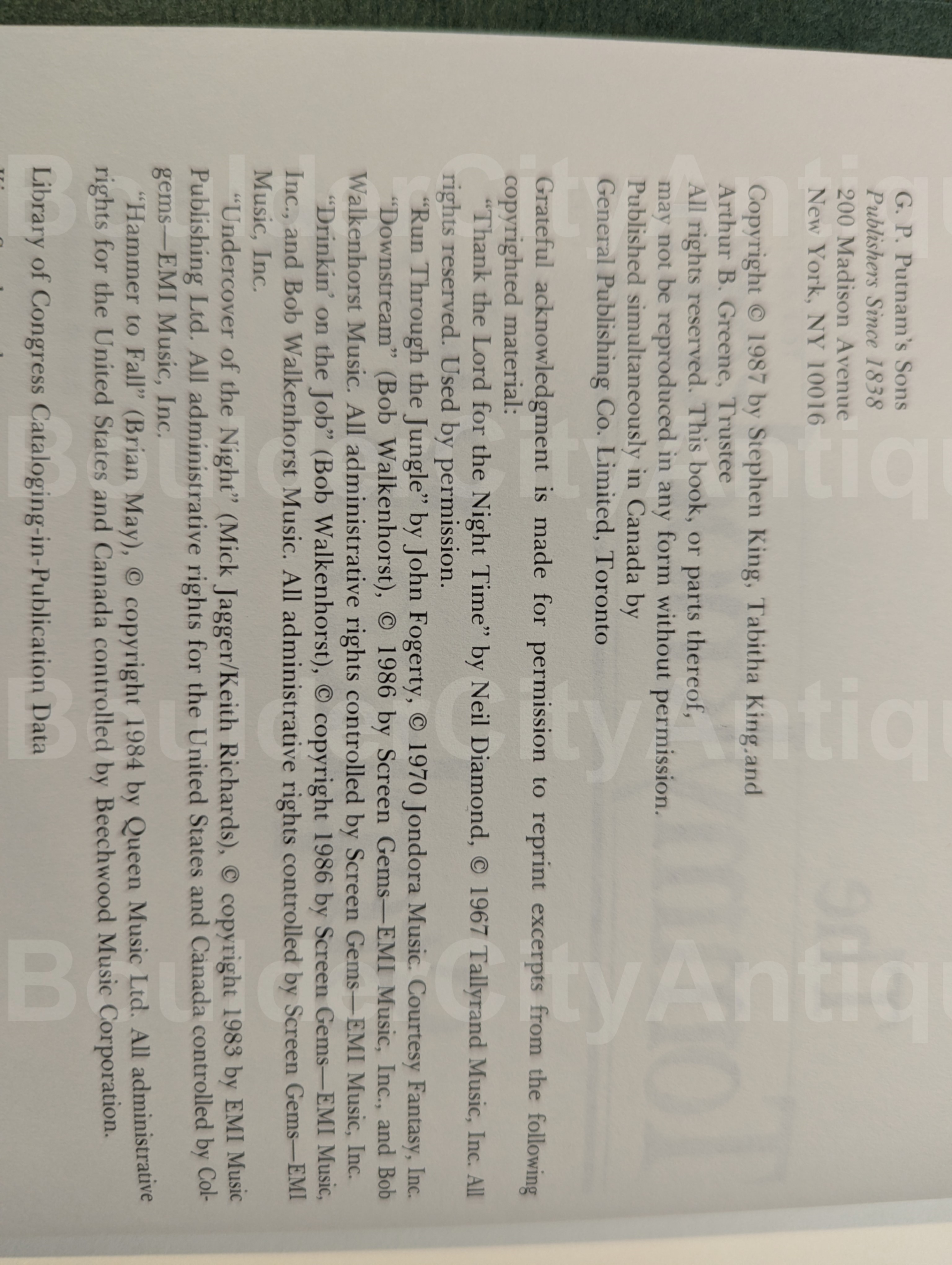 Hardback missing the dust jacket, copyright 1987.