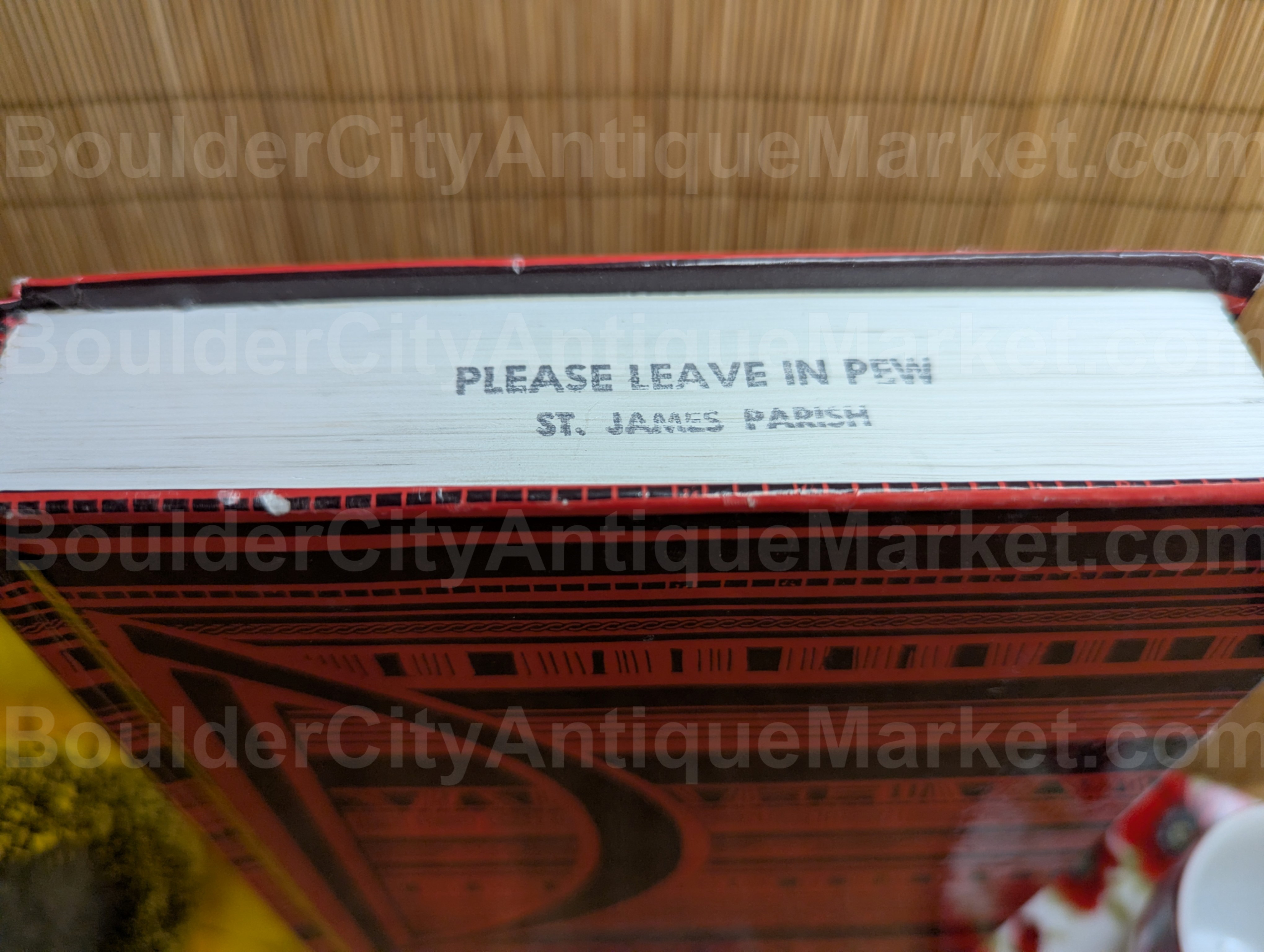 Cover shows some wear, stamped “Please leave in pew, St James Parish”.
