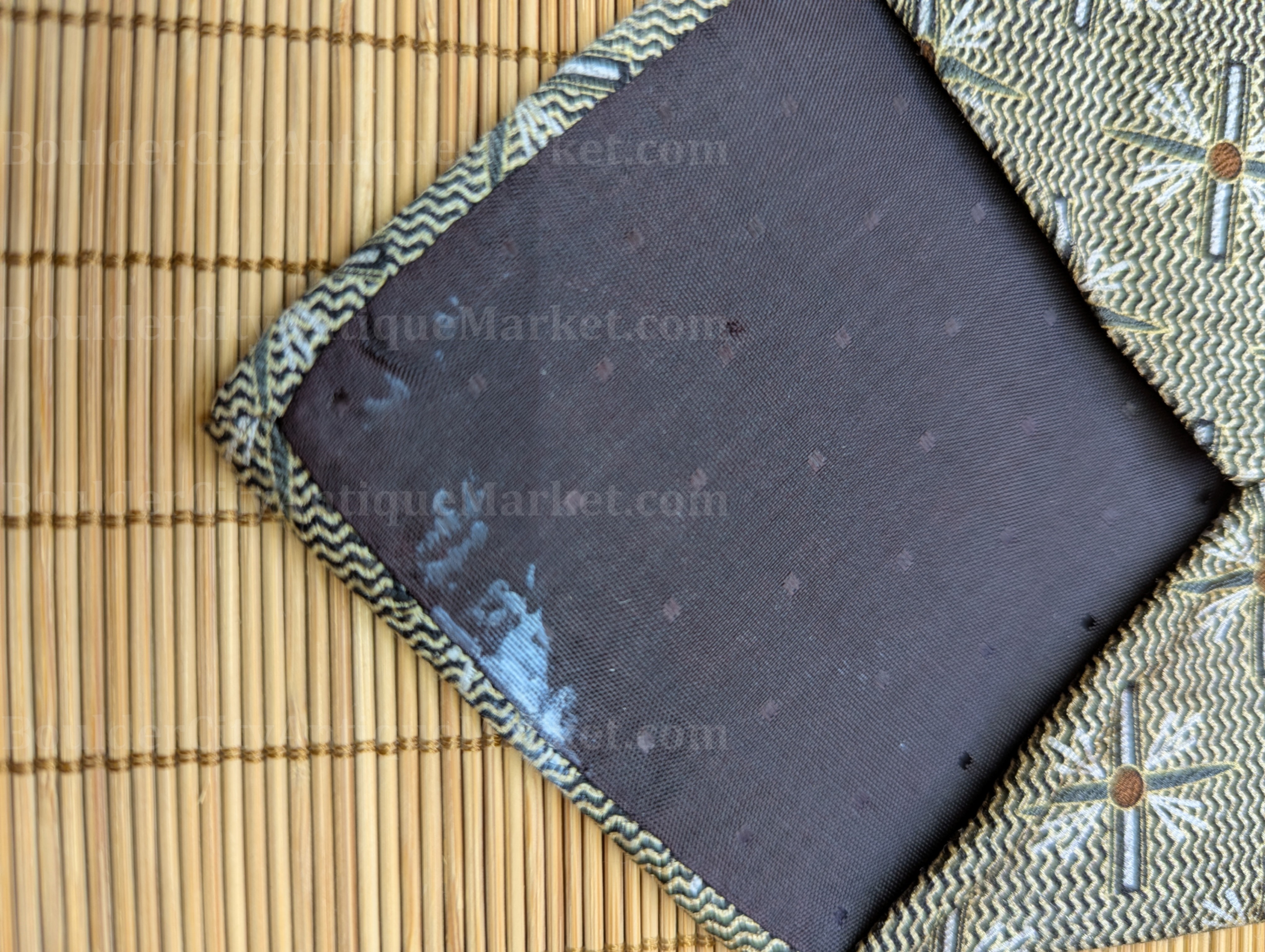 100% silk George Machado Zylos tie in a multitude of colors and a somewhat subtle pattern. **This tie has a sticker residue on the bottom, not visible when the tie is being worn but it is definitely there. See pictures!**
