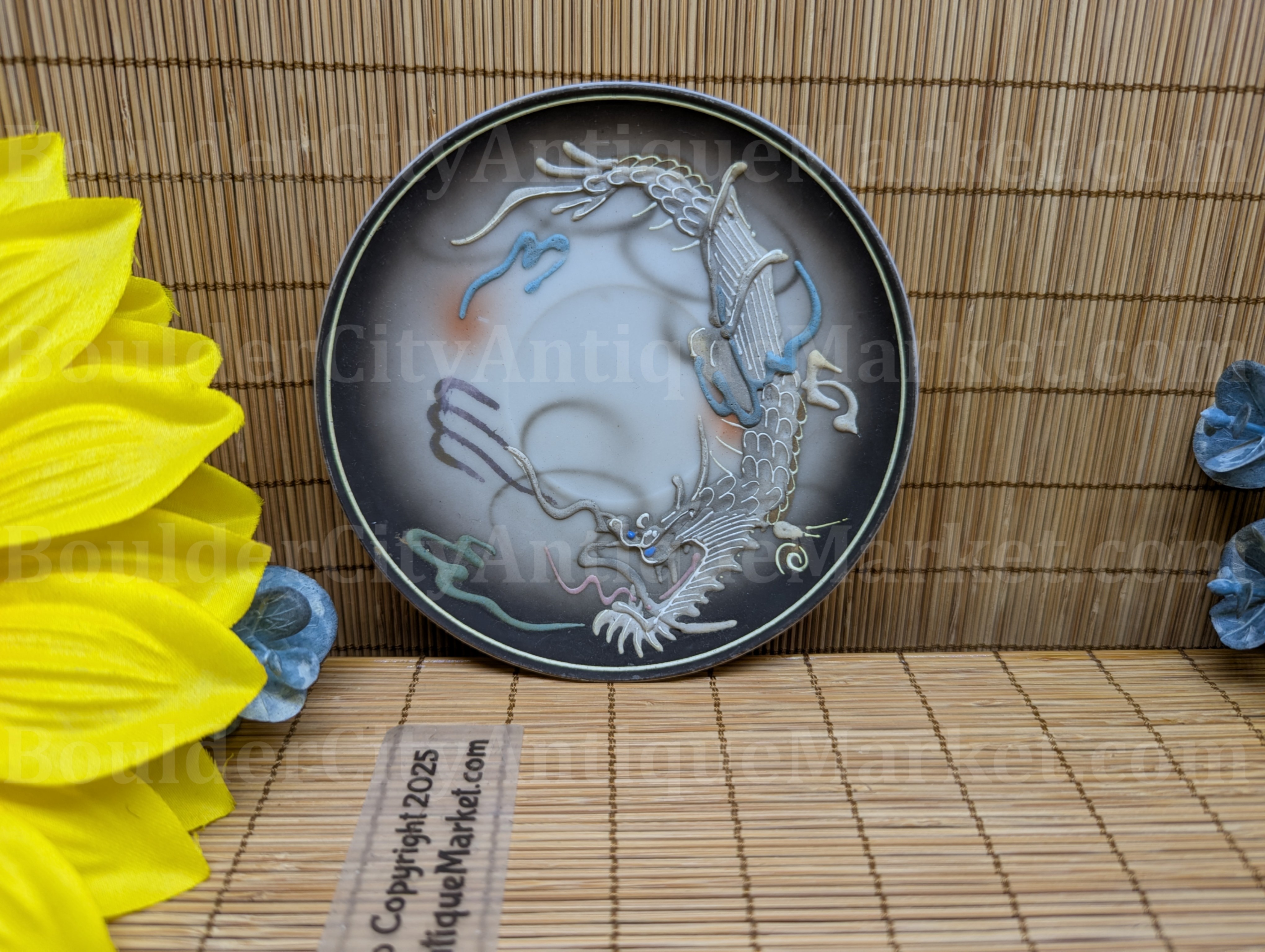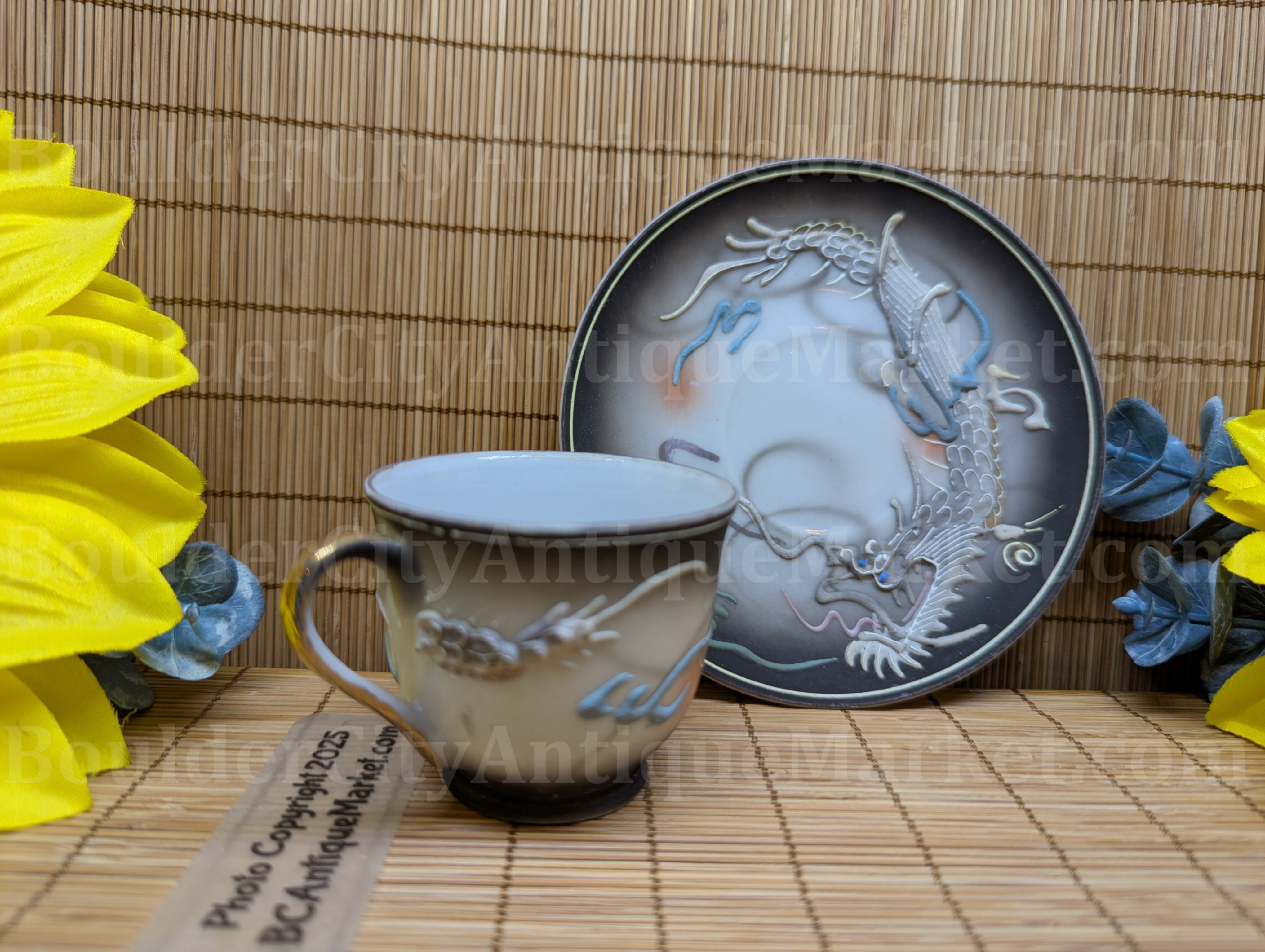 Moriage is a technique using thick enamel to create a raised, textured surface. This black dragon set is marked Maruku China, Made in Japan. It came from a collector who kept her items well protected and is in awesome shape for its age. The saucer measures 4.5-inches in diameter and the cup is 2-inches in height. Please check the pictures for any condition details or concerns.