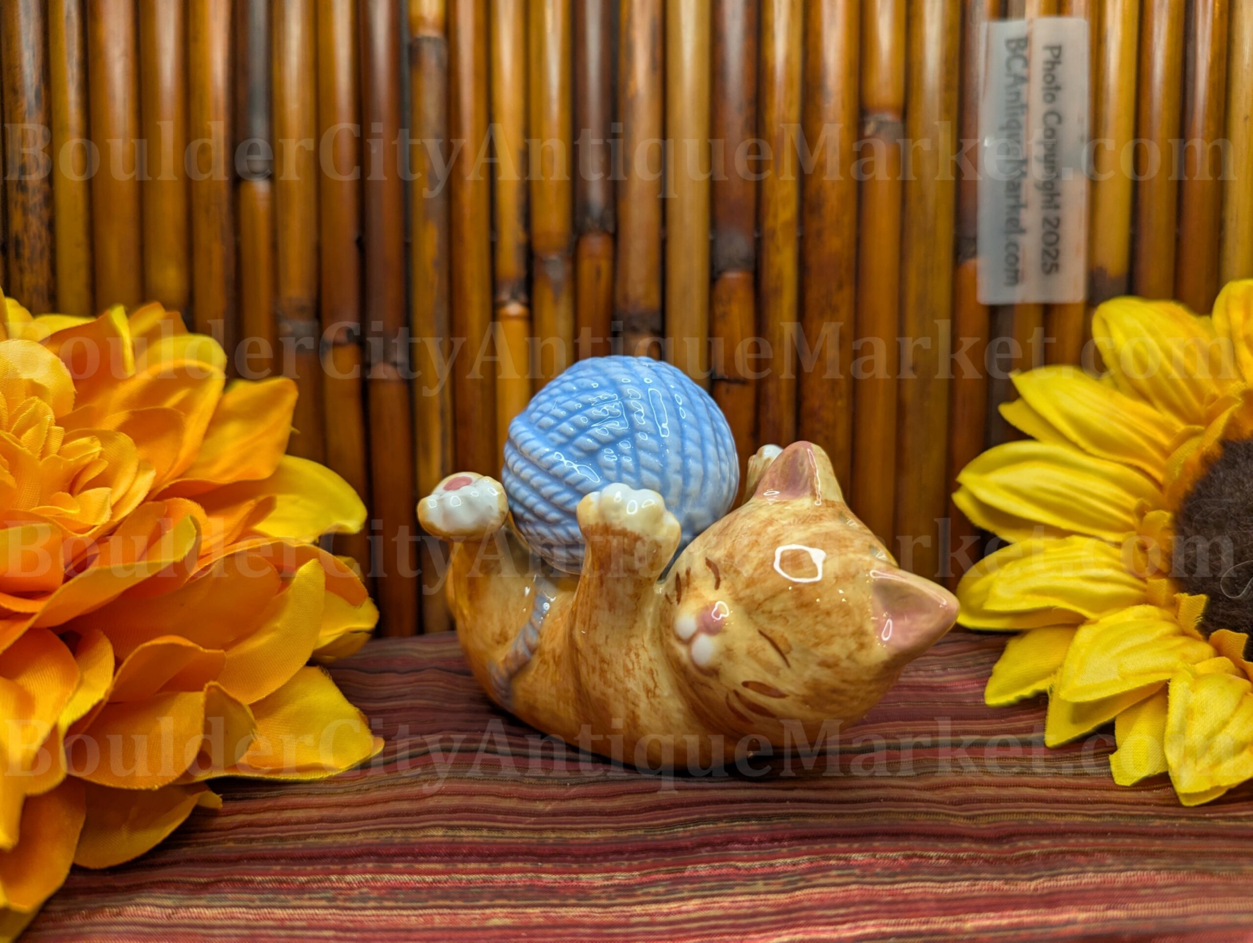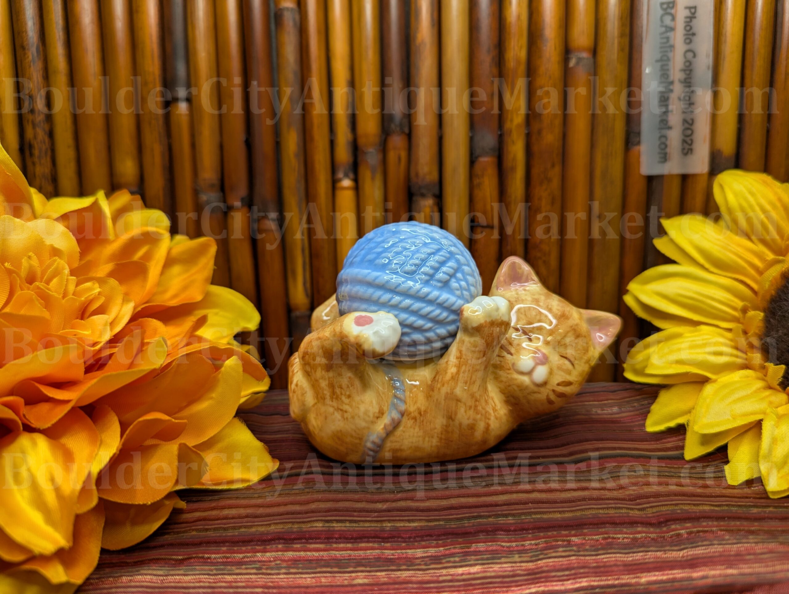 Orange Cat and Blue Yarn Ball Salt and Pepper Shakers