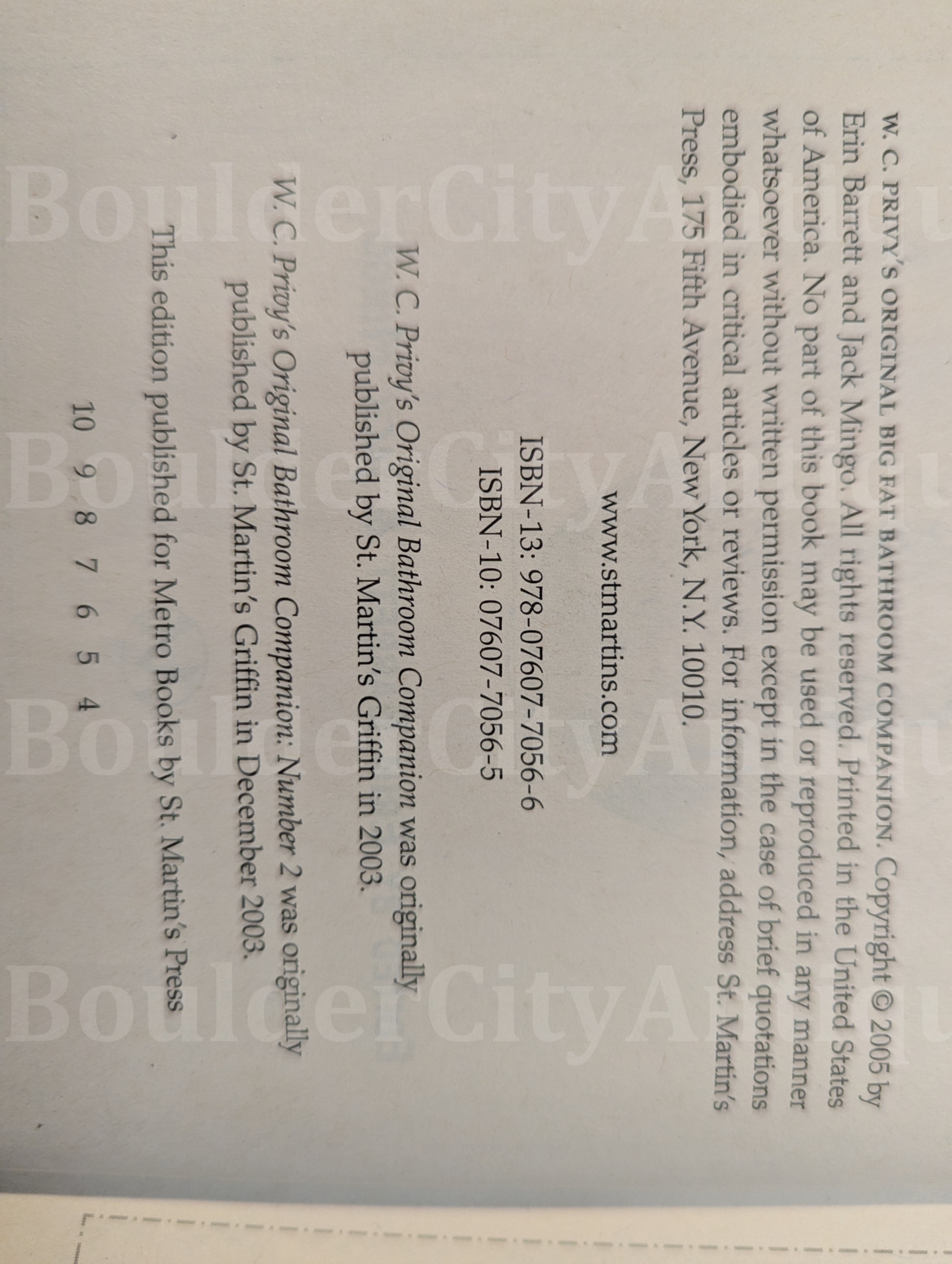 Edited by Erin Barrett & Jack Mingo. 474 pages of bathroom fact and stories. Hardback, original dustjacket, copyright 2005.