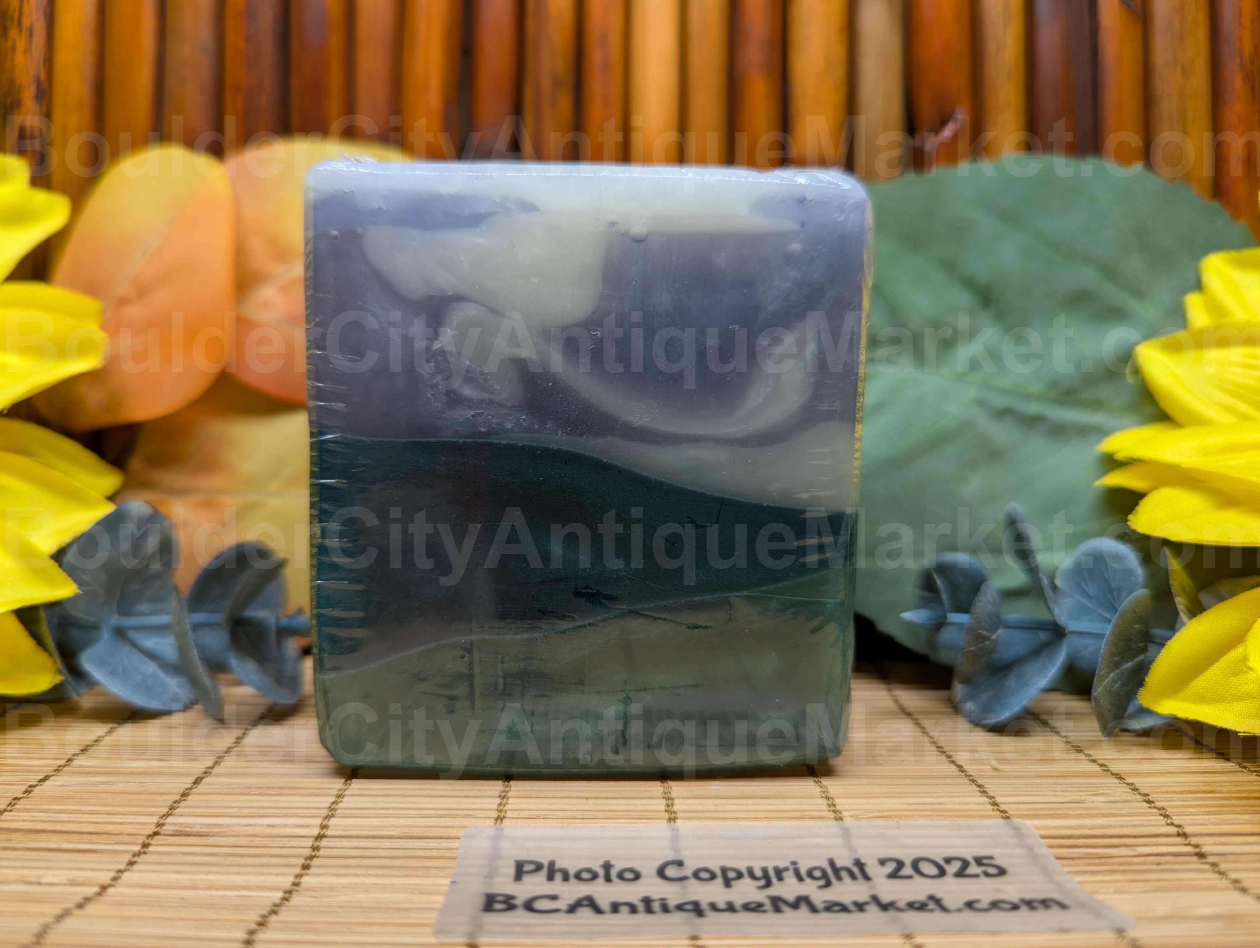 This soap is patterned after summer storms in the Palominas Valley of Arizona. Juniper, Cranberry, Pine, Peppermint and Cedarwood combine for a fresh scent to go with the green hills and swirling clouds in the expansive sky.