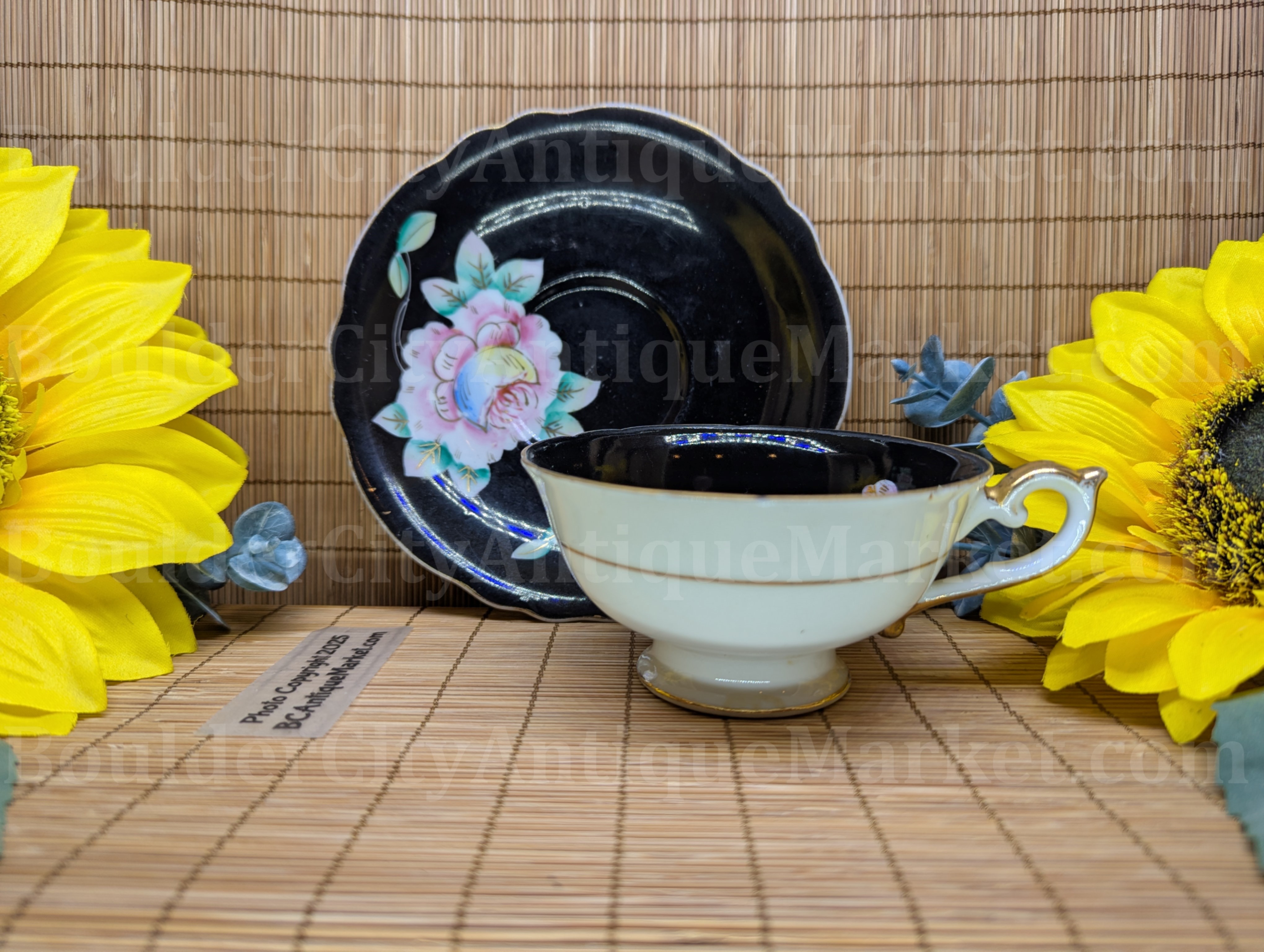 Beautifully gold accented, hand-painted rose pattern on this teacup and saucer marked Prince China, Made in Occupied Japan. This piece came from a collector who kept her pieces well protected and in excellent condition. The gold work is very striking on this piece.