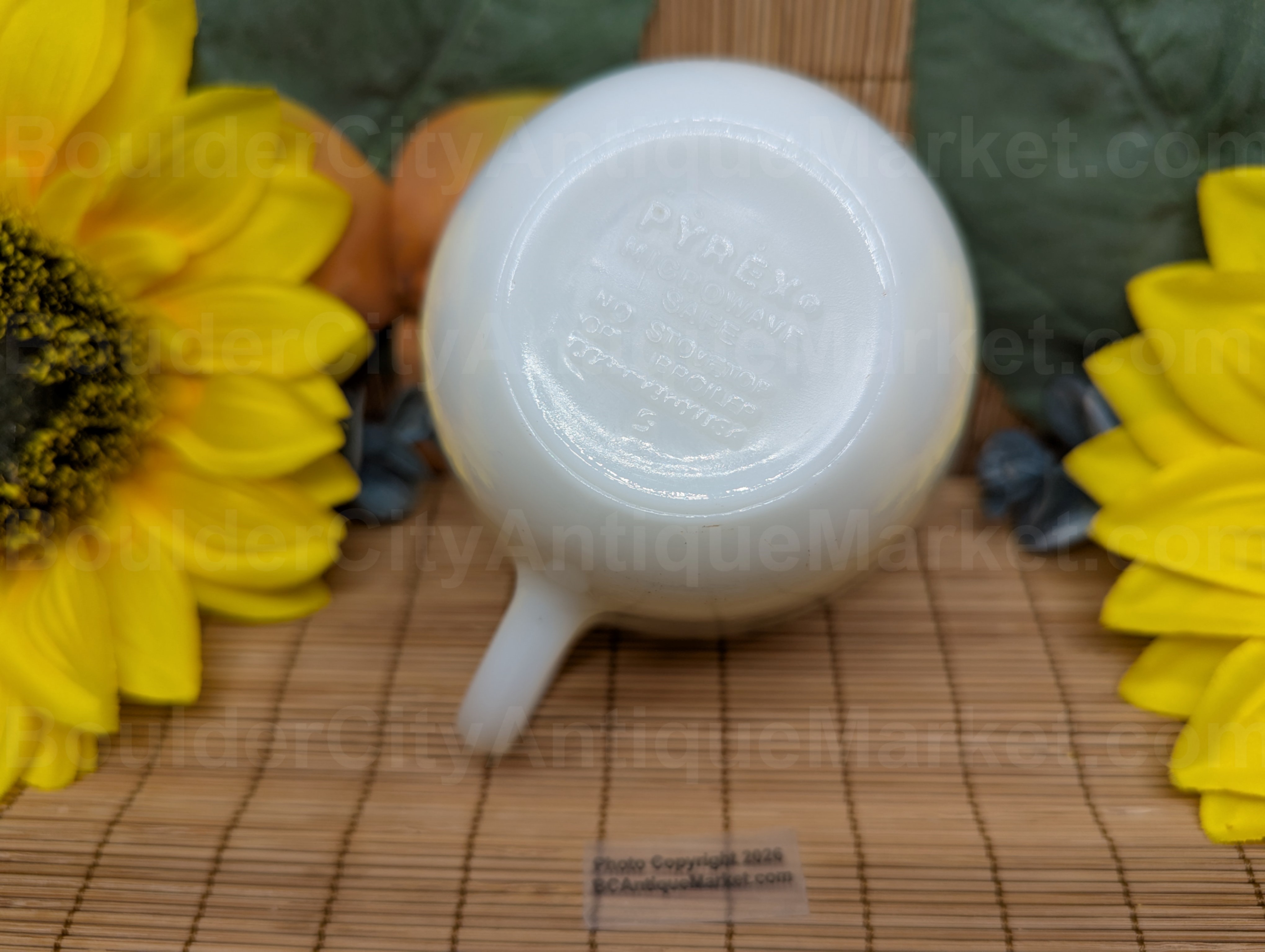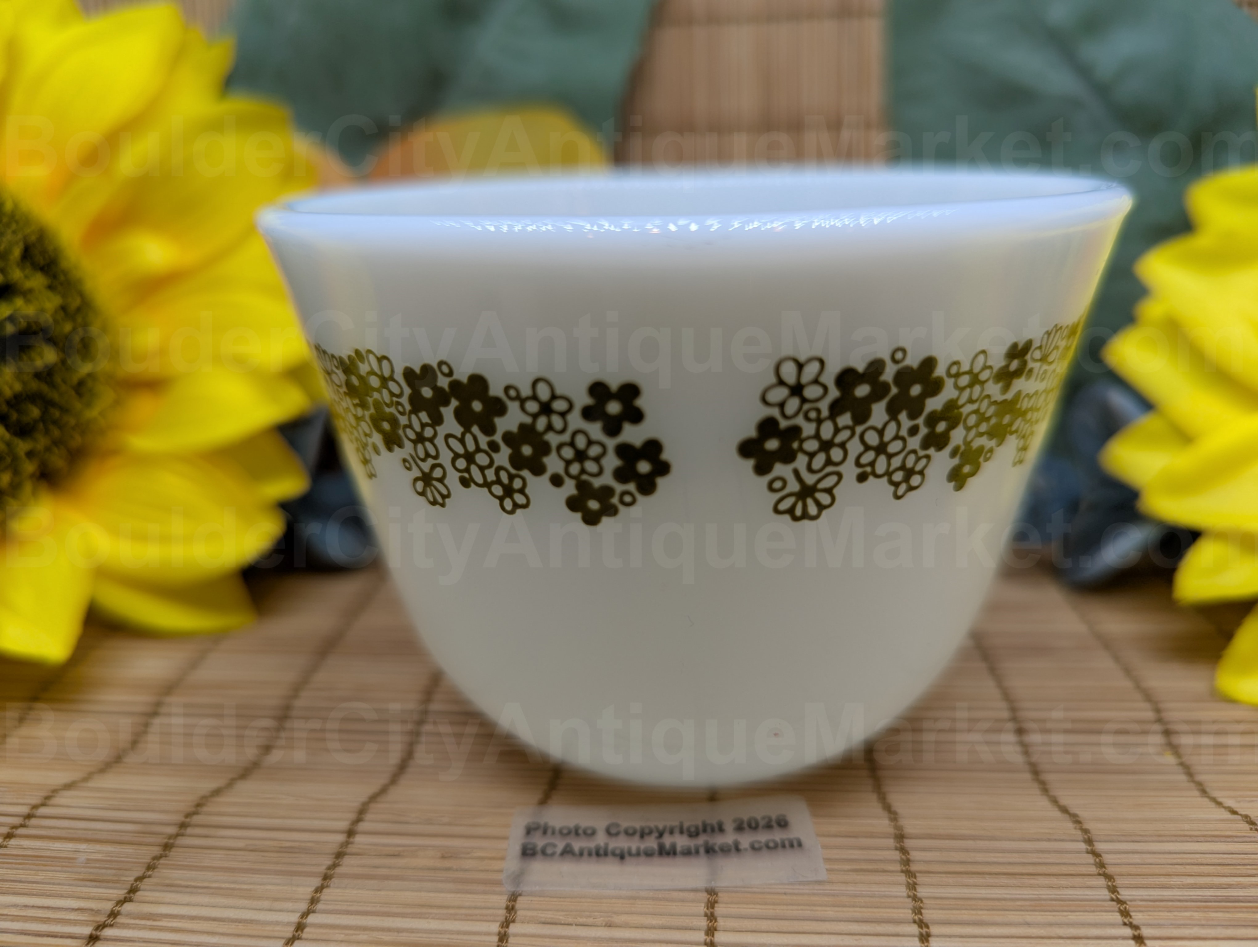 This is the classic 1970s Pyrex milk glass with the Spring Blossoms pattern in green.