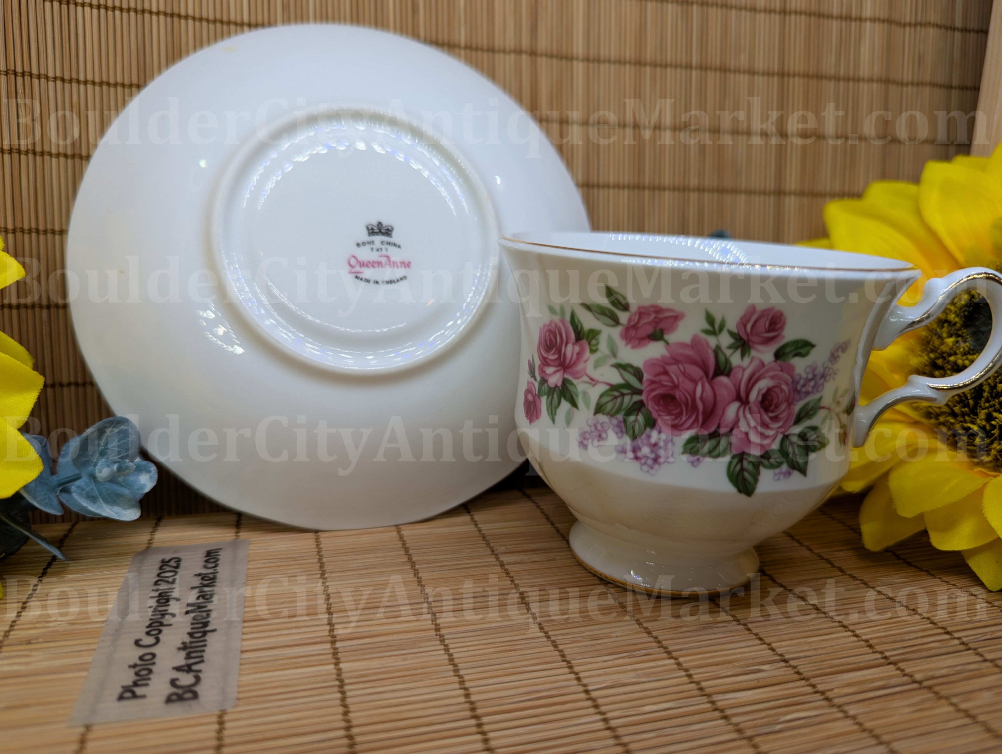 Fine Bone China Made in England, gold gilt on cup and saucer, circa early 1960s and a well-kept piece that has always lived in a display case or in packaging.