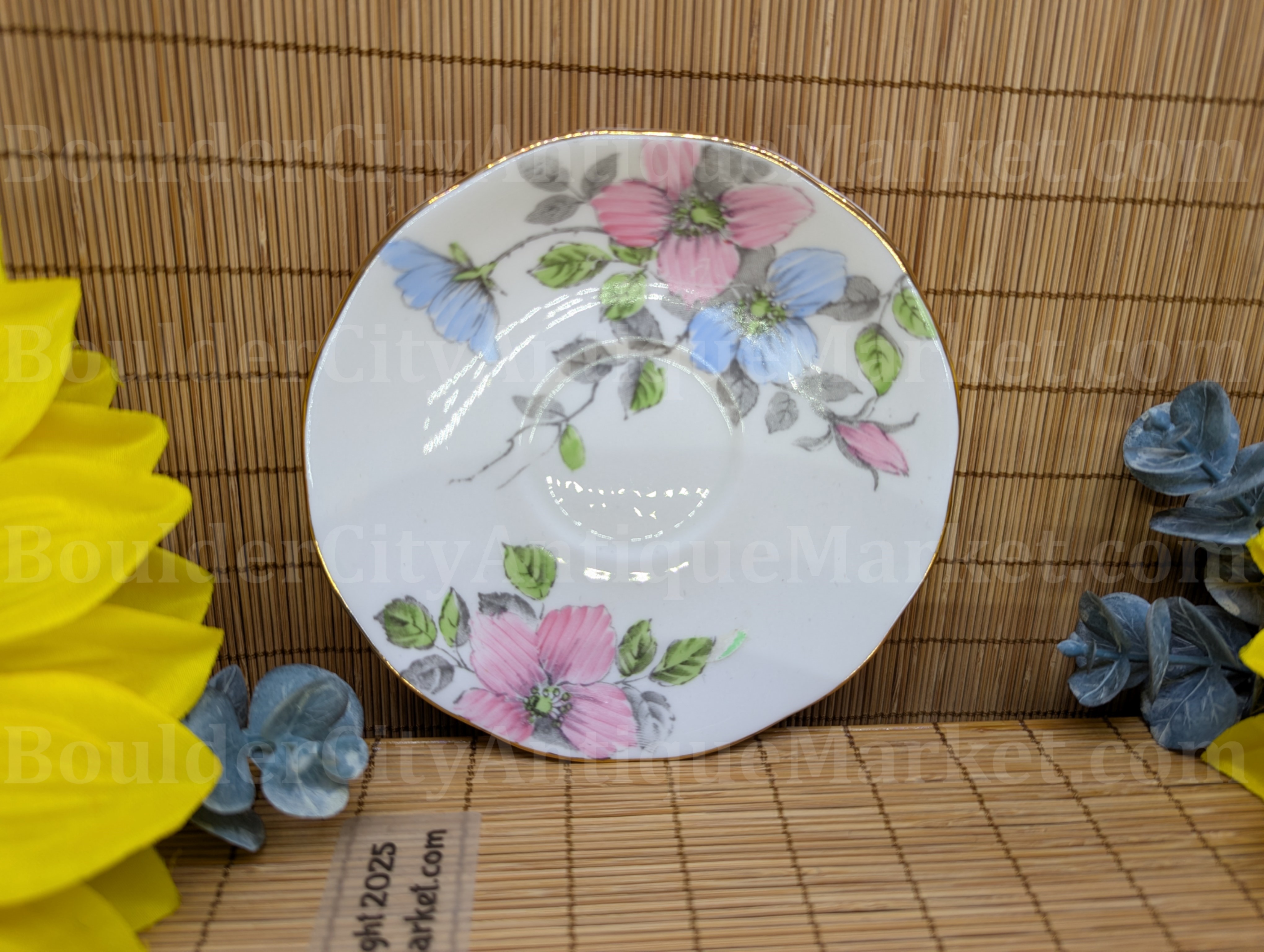 Salisbury Demitasse cup made in England. The cup and saucer both have gold gilding. We’re not sure of the dates but we are sure this is at least vintage and thought to predate 1950. This set came from a collector who protected her pieces well.