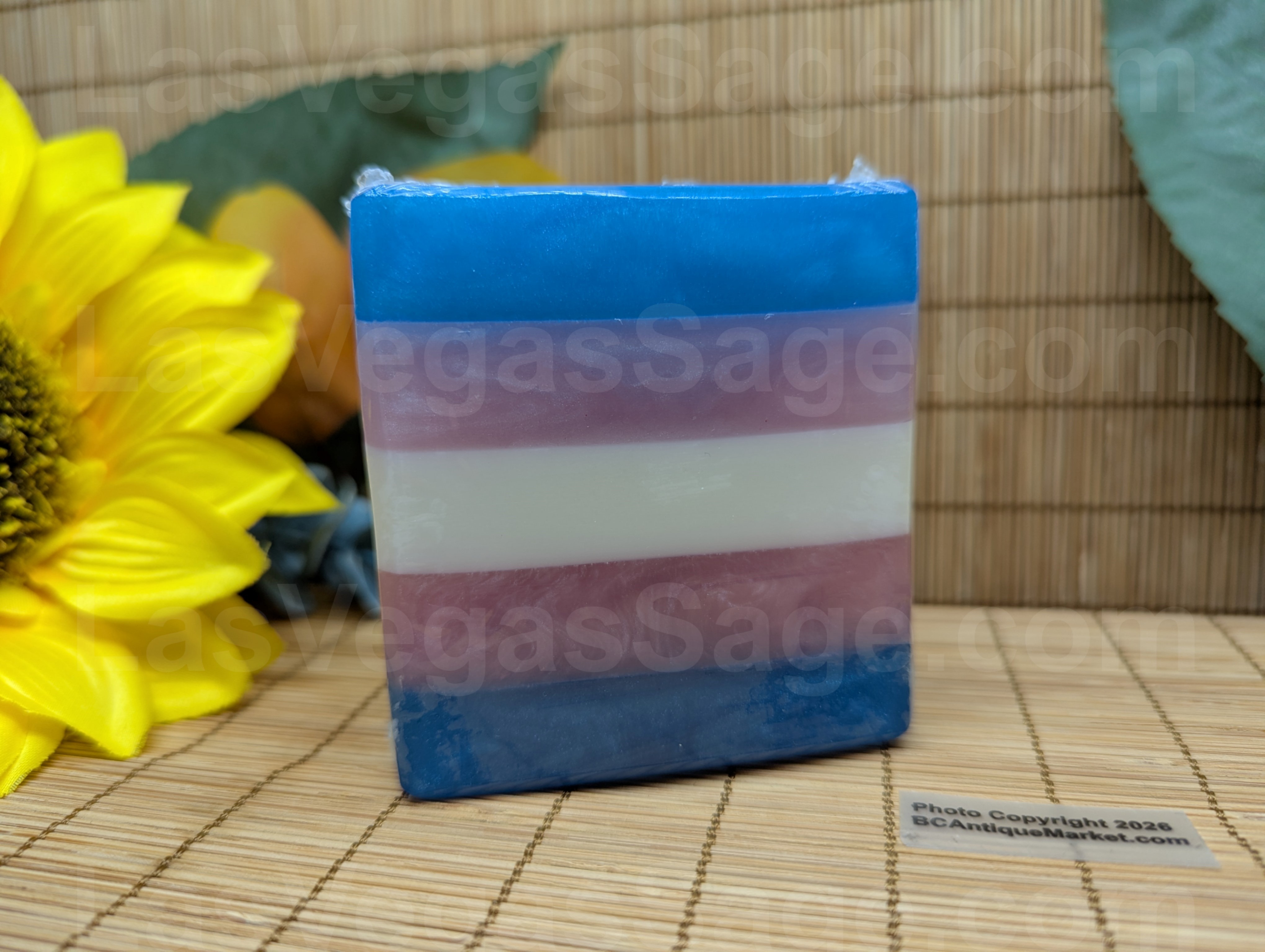 Warm Mahogany, Teakwood, Lavender and Cedar scented soap in the shades of the Trans Pride Flag.