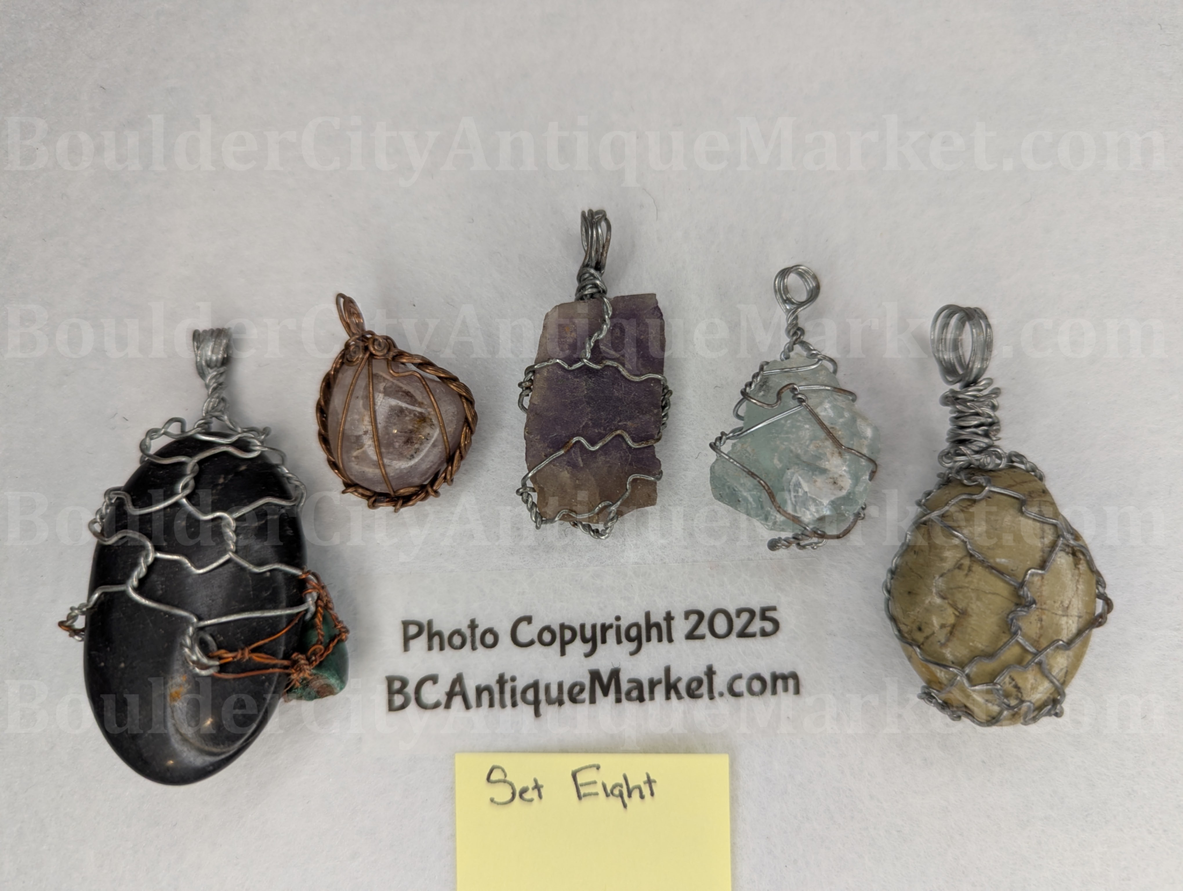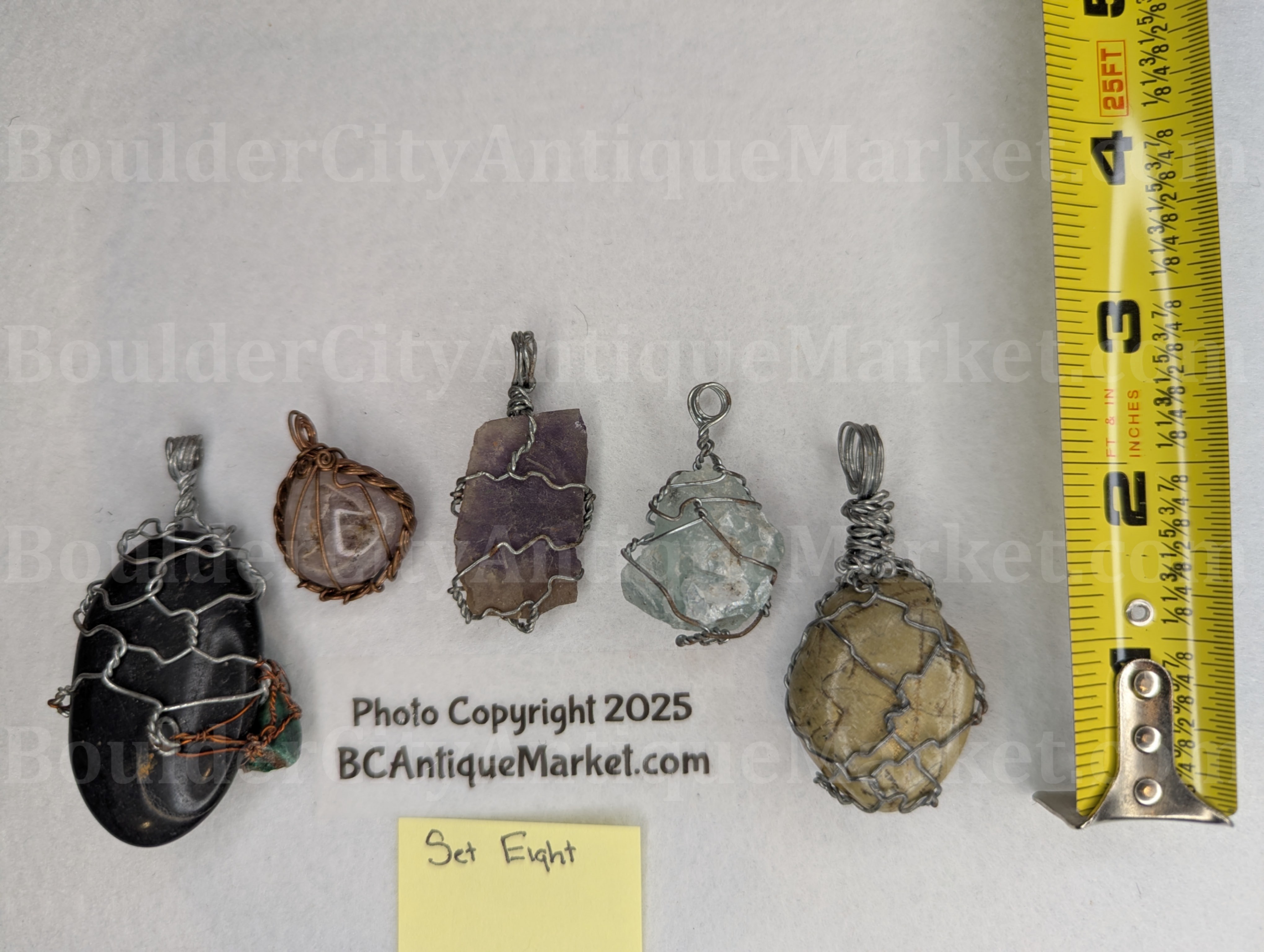Five wrapped pendants, please see pictures for details. All pendants are stone.