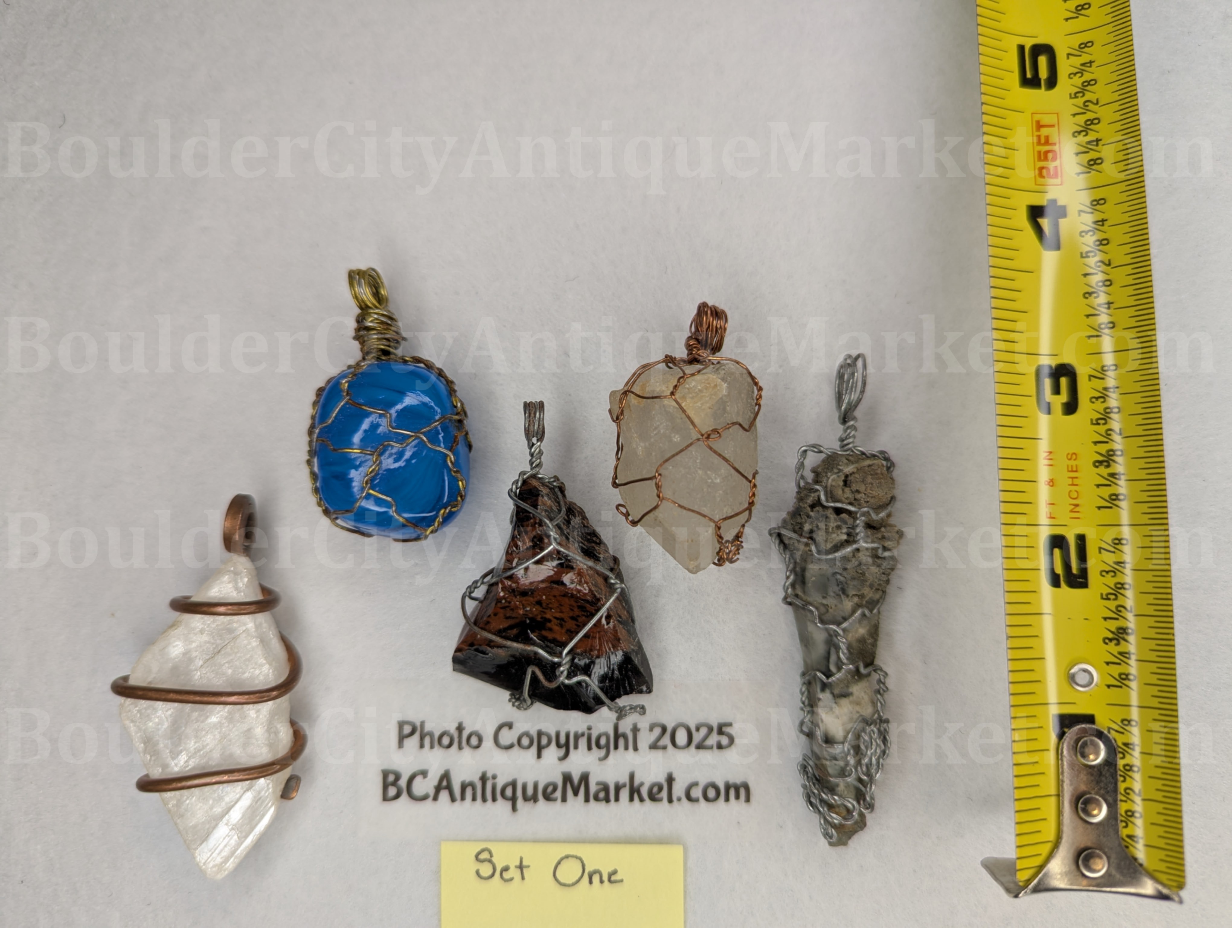 Five wrapped pendants, please see pictures for details. All pendants are stone.