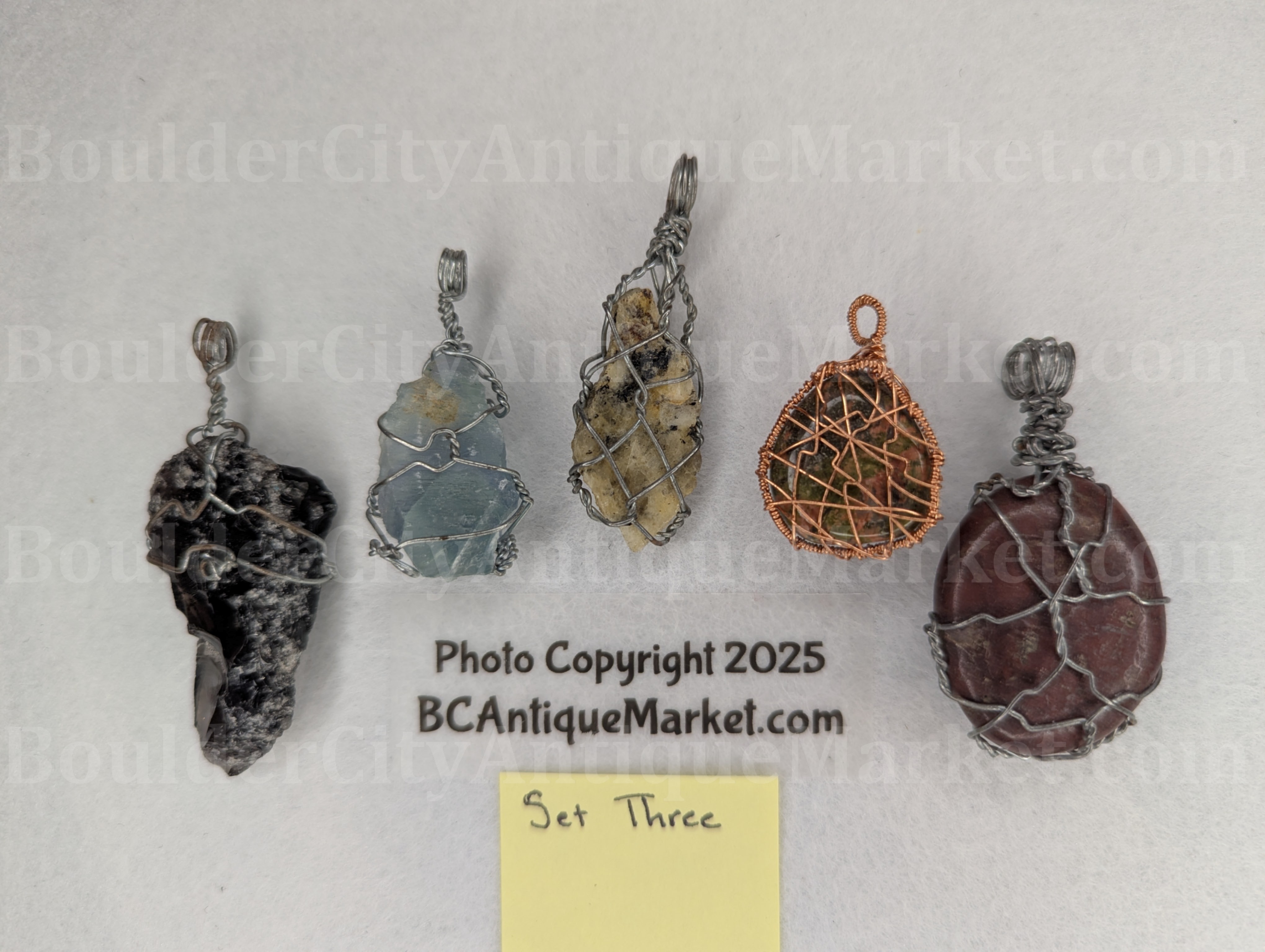 Five wrapped pendants, please see pictures for details. All pendants are stone.